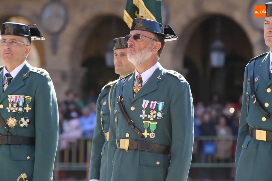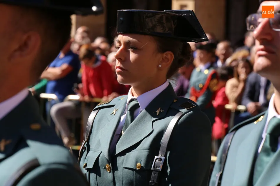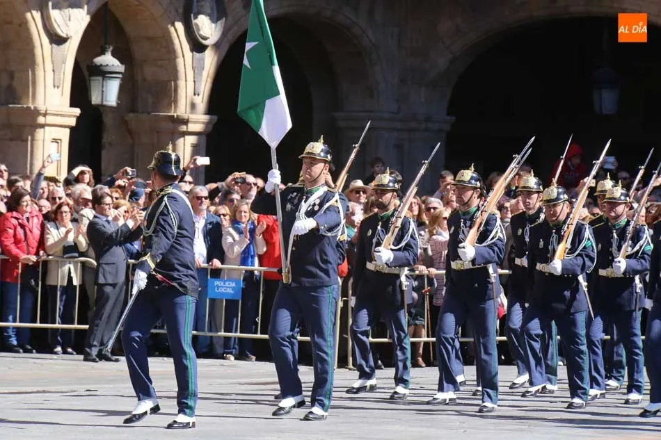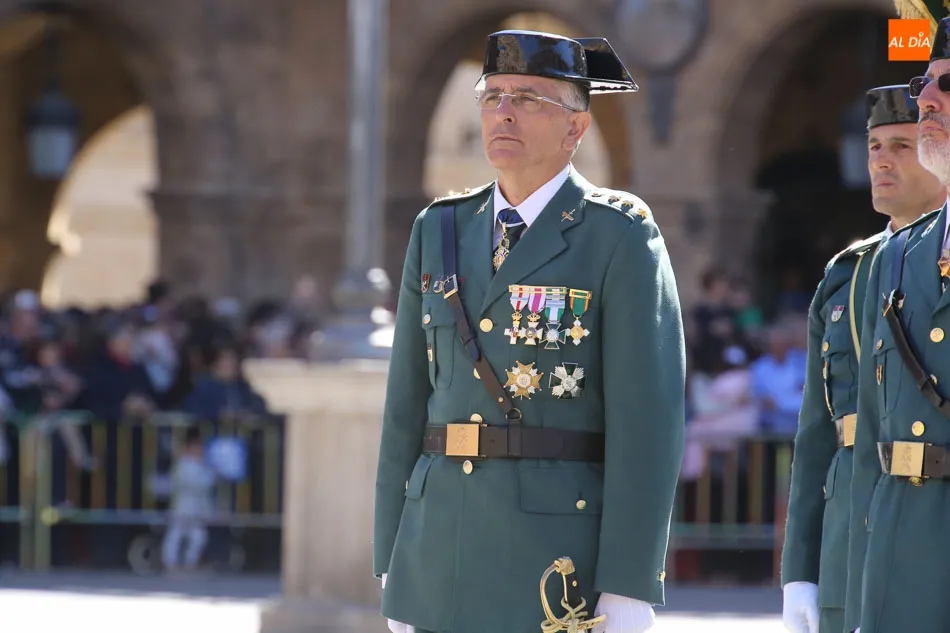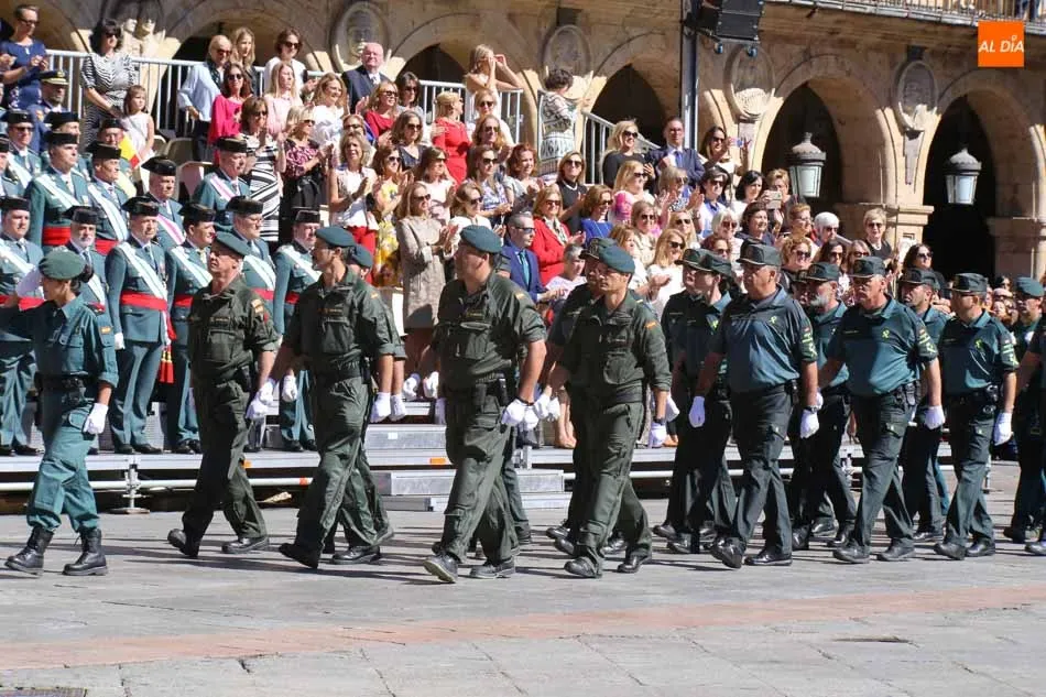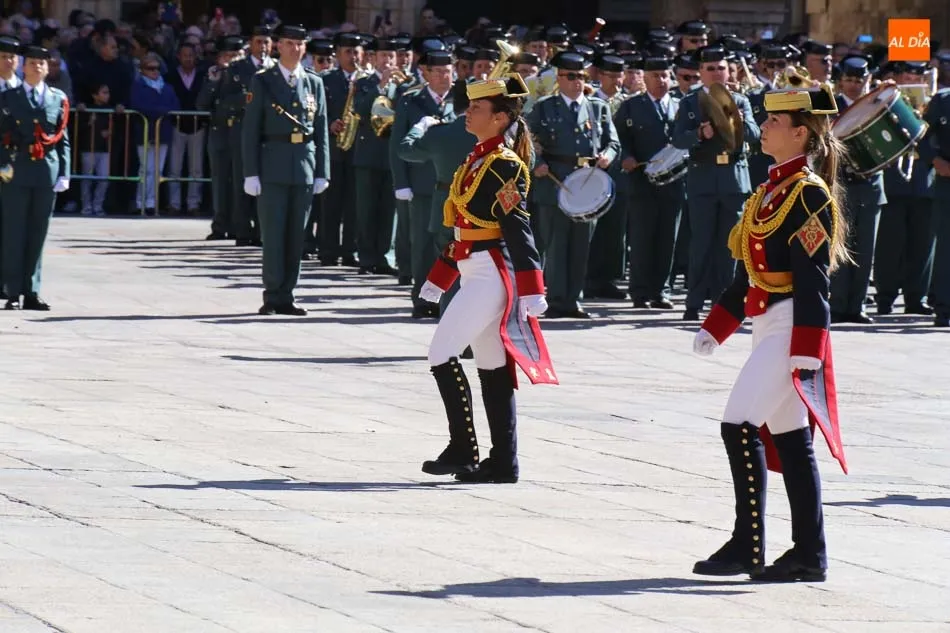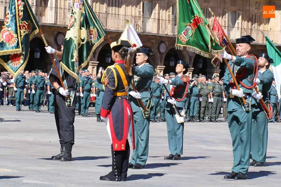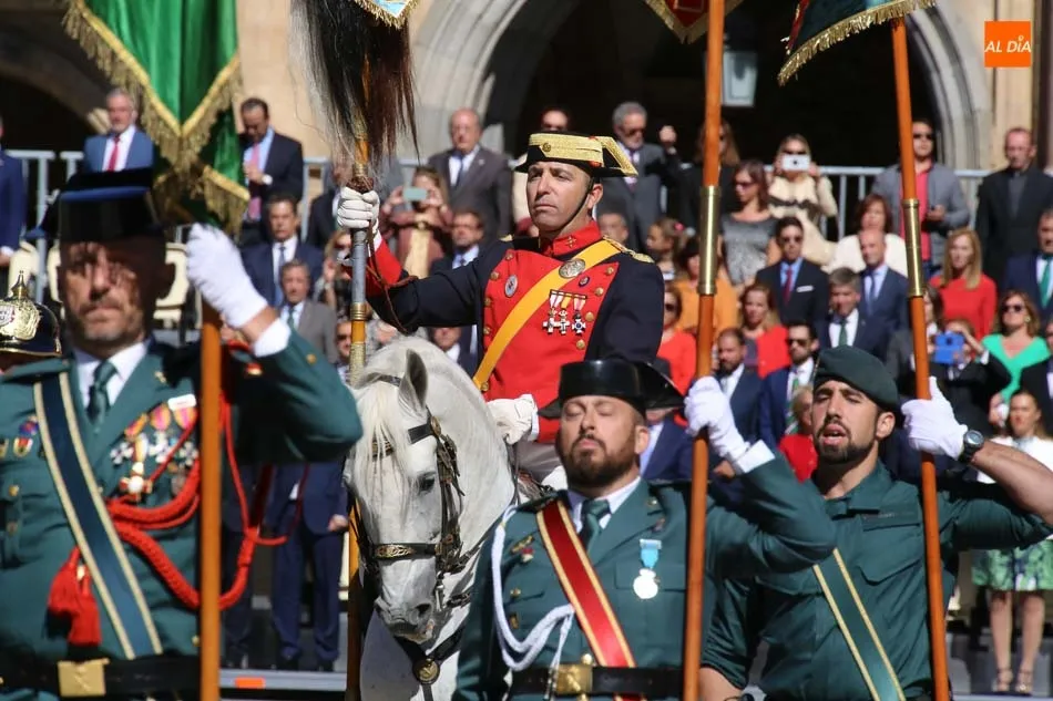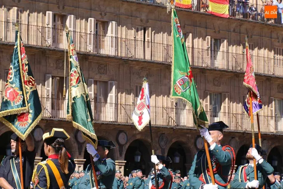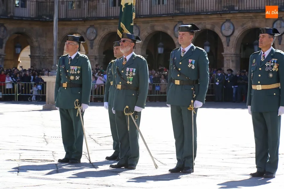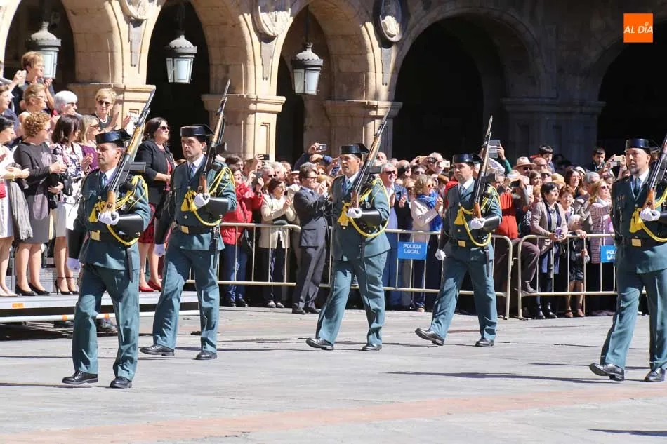 La Plaza Mayor de Salamanca vistió este domingo sus mejores galas para recibir una de las celebraciones más esperadas por la Guardia Civil, el acto castrense enmarcado en las actividades conmemorativas por la festividad de su patrona, la Virgen del Pilar.