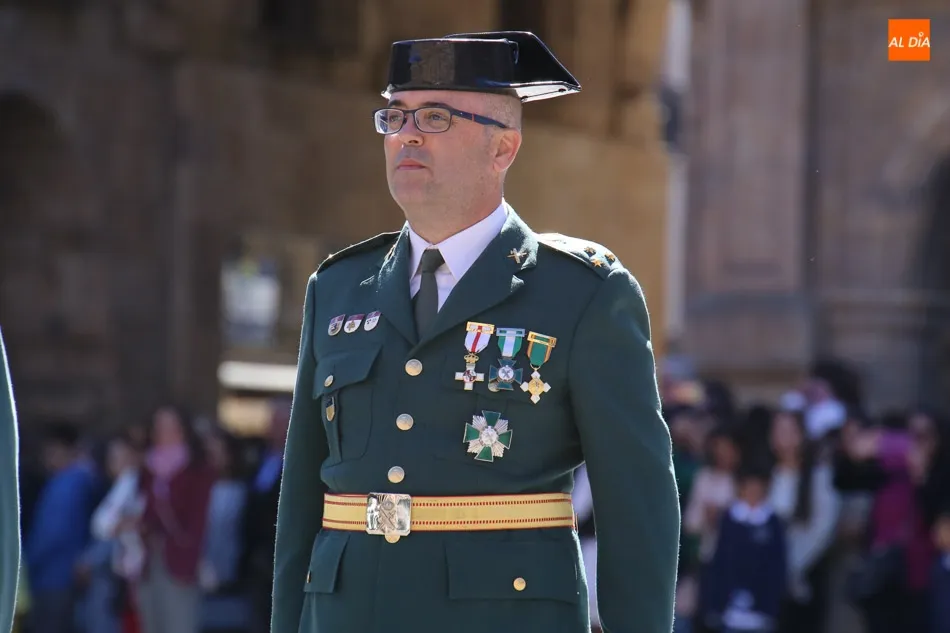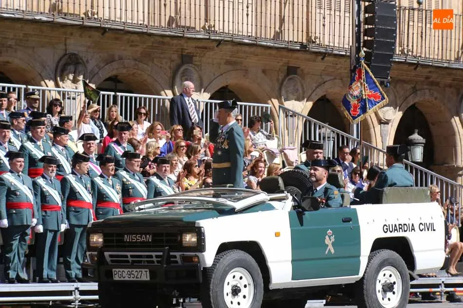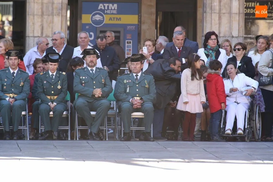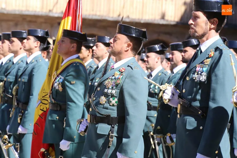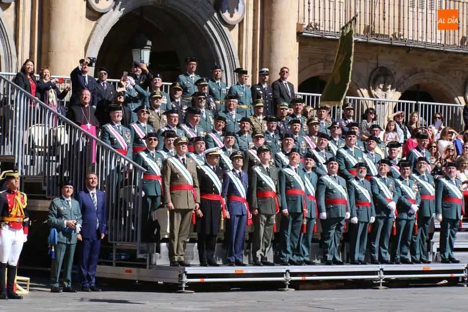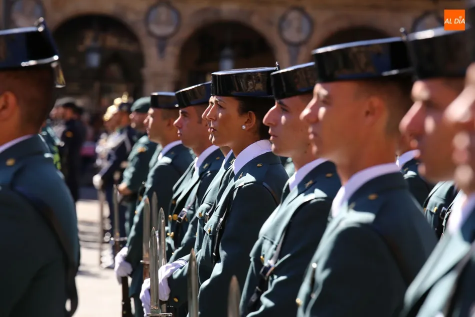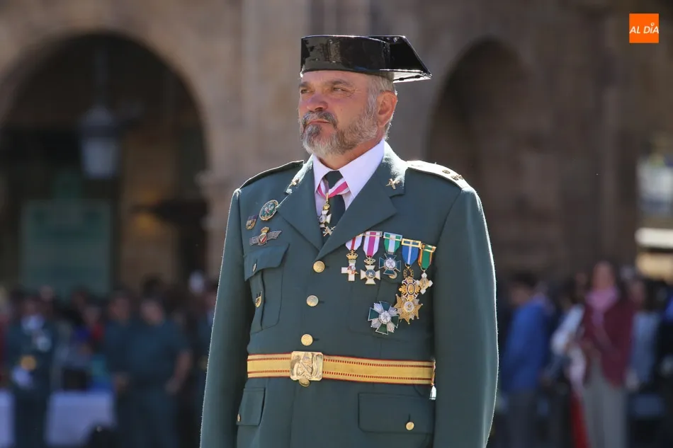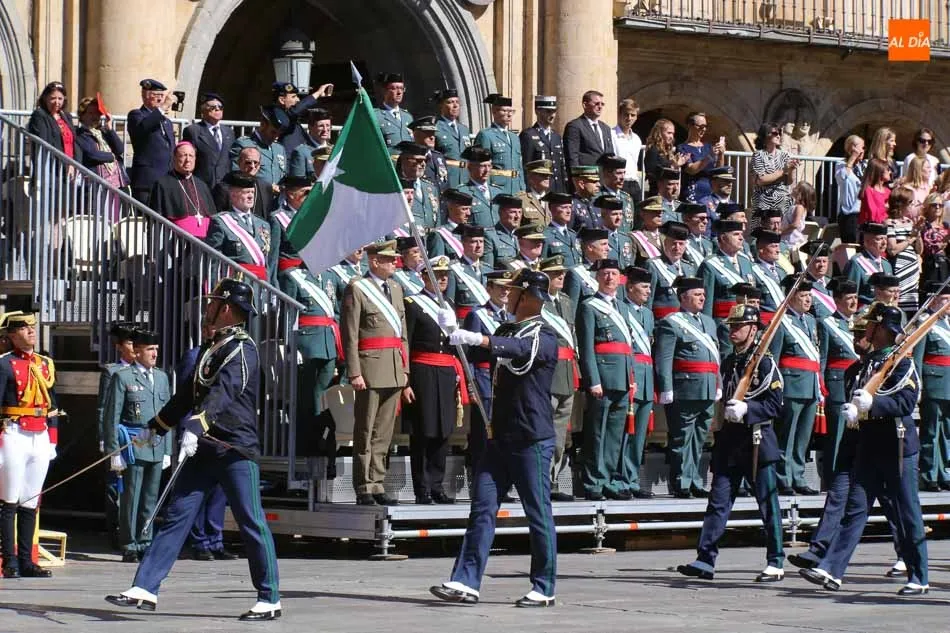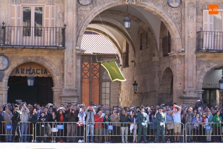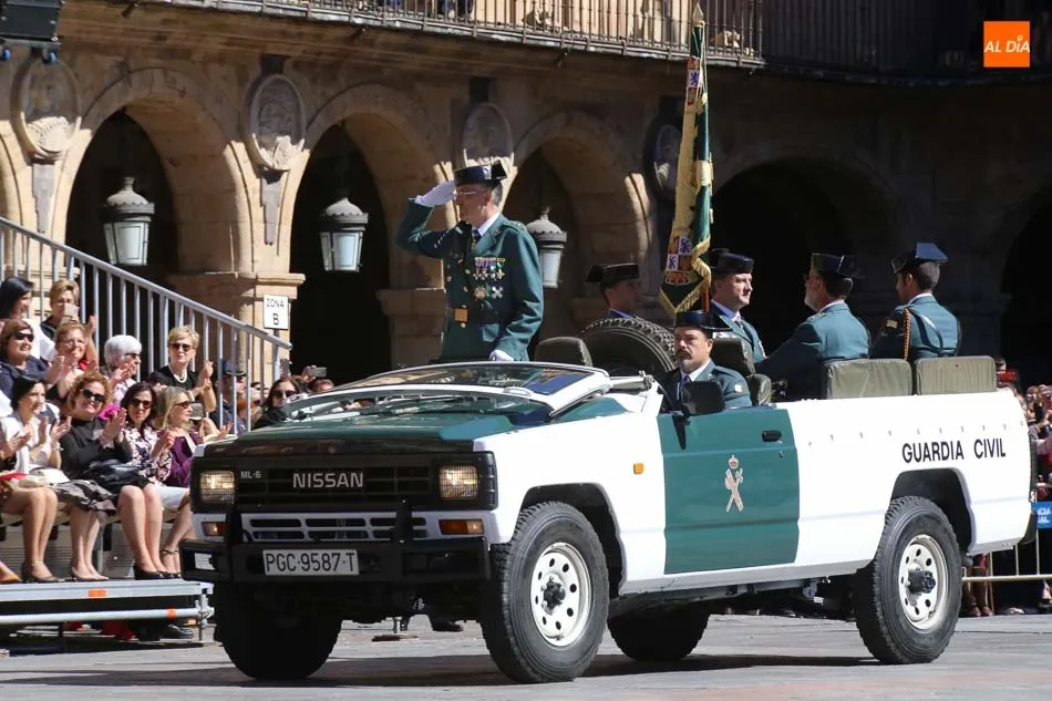 La Plaza Mayor de Salamanca vistió este domingo sus mejores galas para recibir una de las celebraciones más esperadas por la Guardia Civil, el acto castrense enmarcado en las actividades conmemorativas por la festividad de su patrona, la Virgen del Pilar.