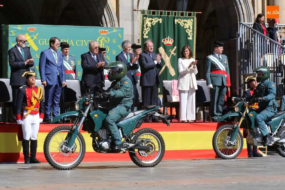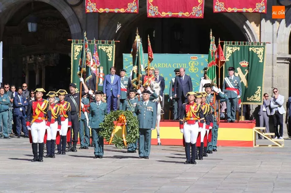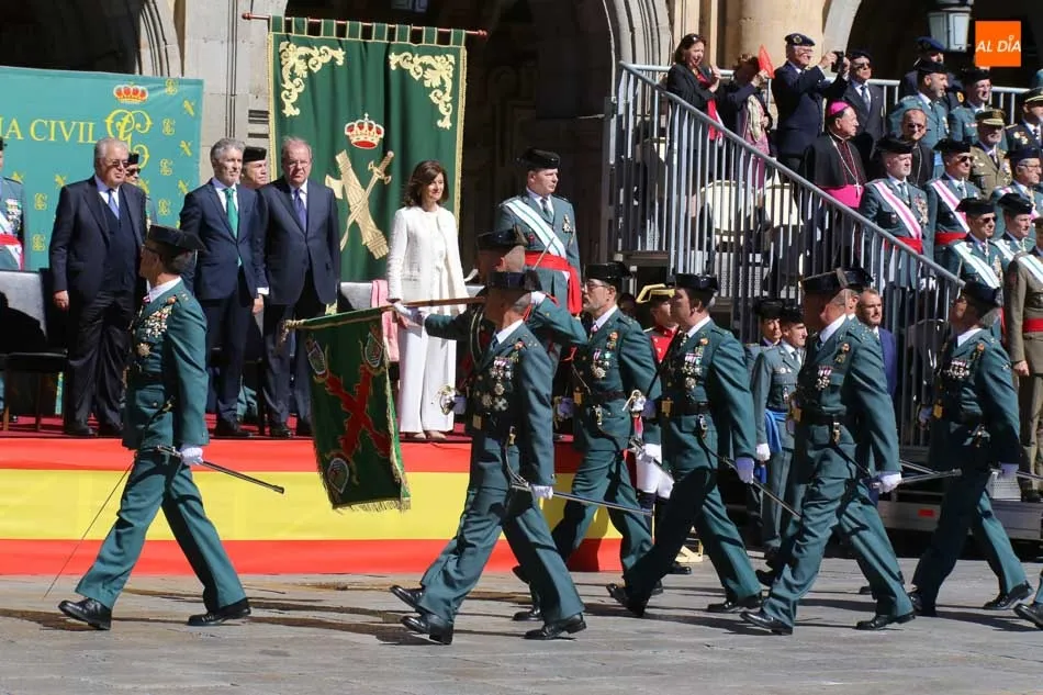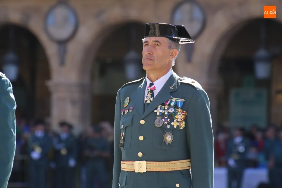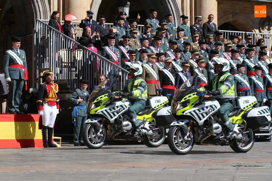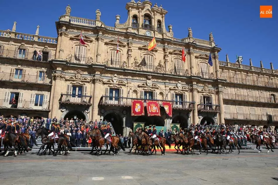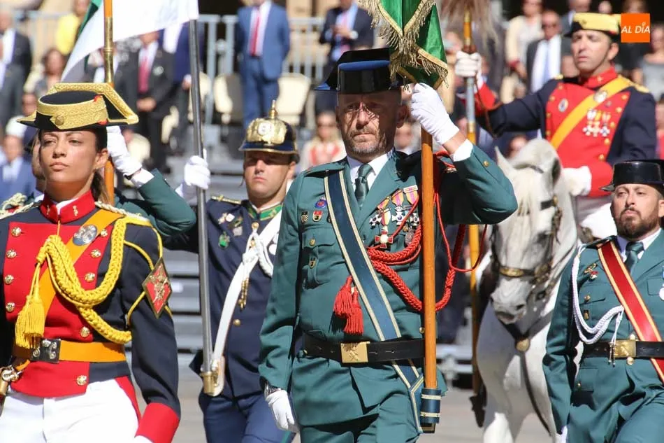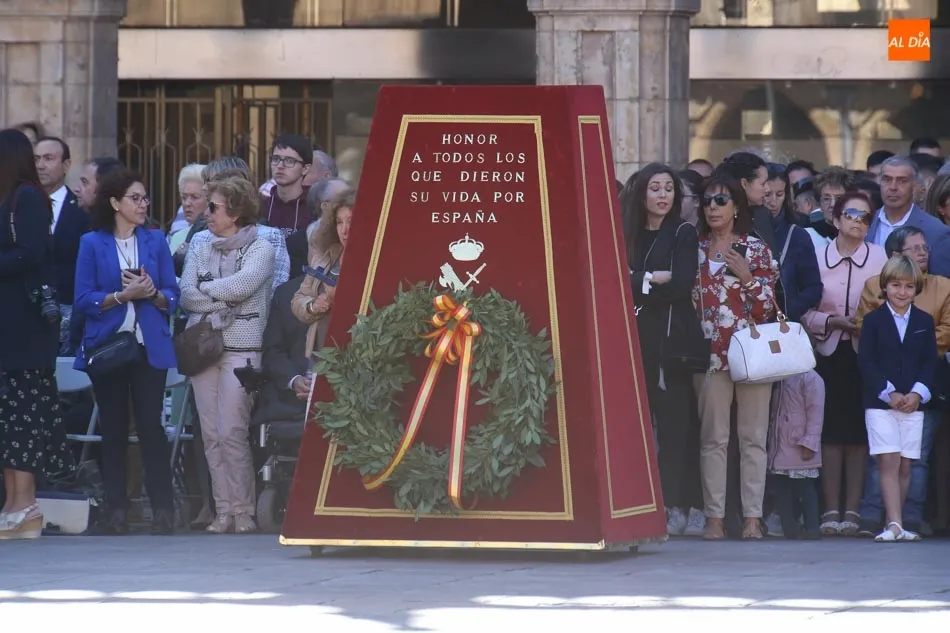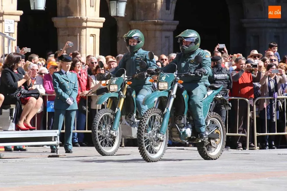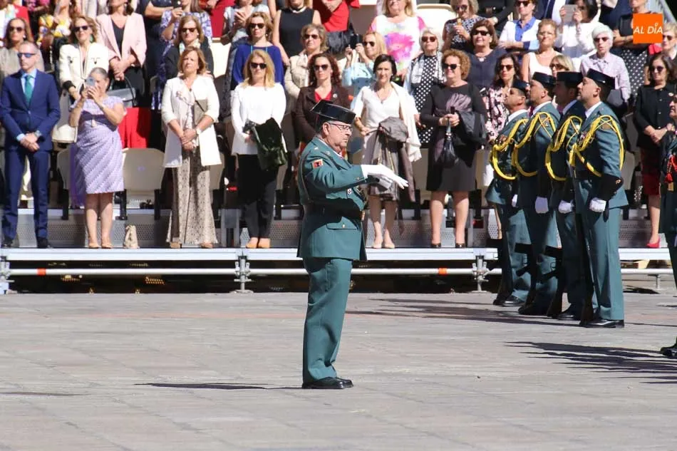 La Plaza Mayor de Salamanca vistió este domingo sus mejores galas para recibir una de las celebraciones más esperadas por la Guardia Civil, el acto castrense enmarcado en las actividades conmemorativas por la festividad de su patrona, la Virgen del Pilar.