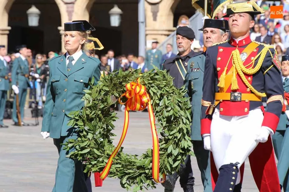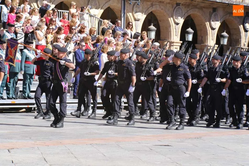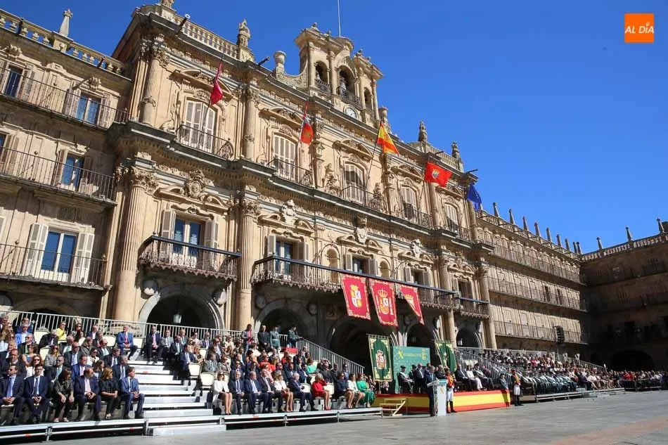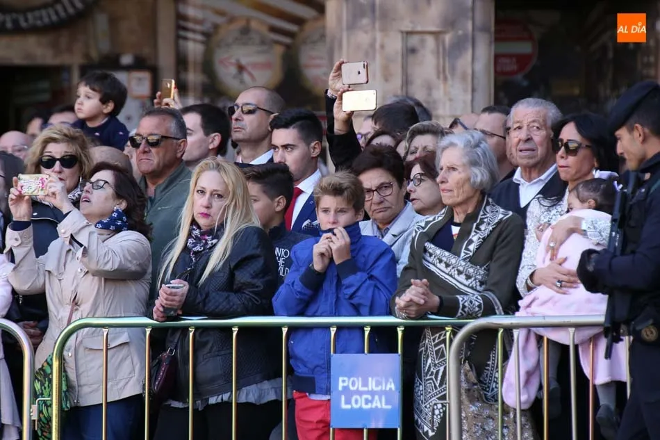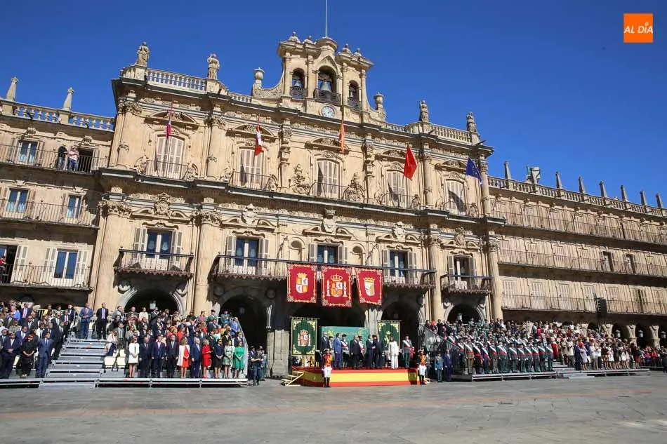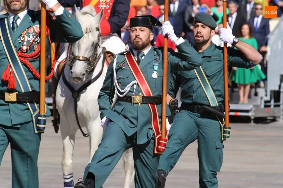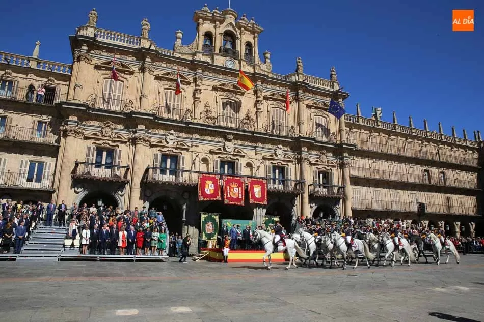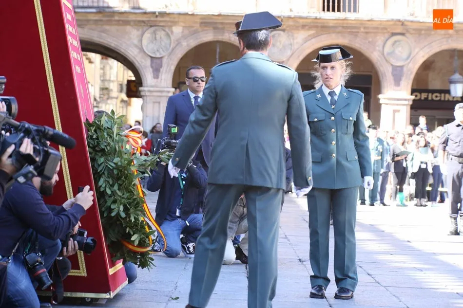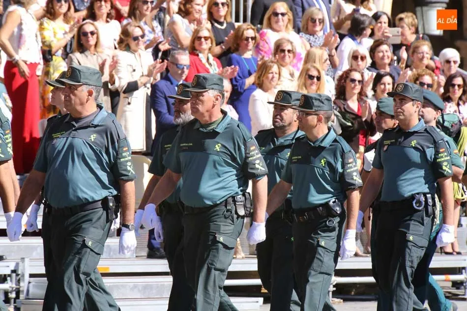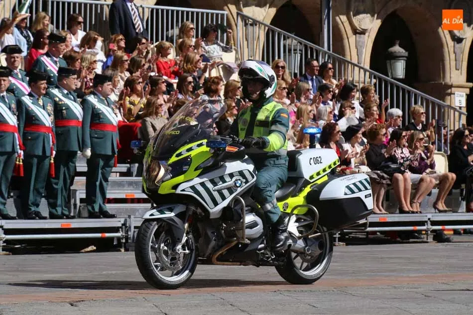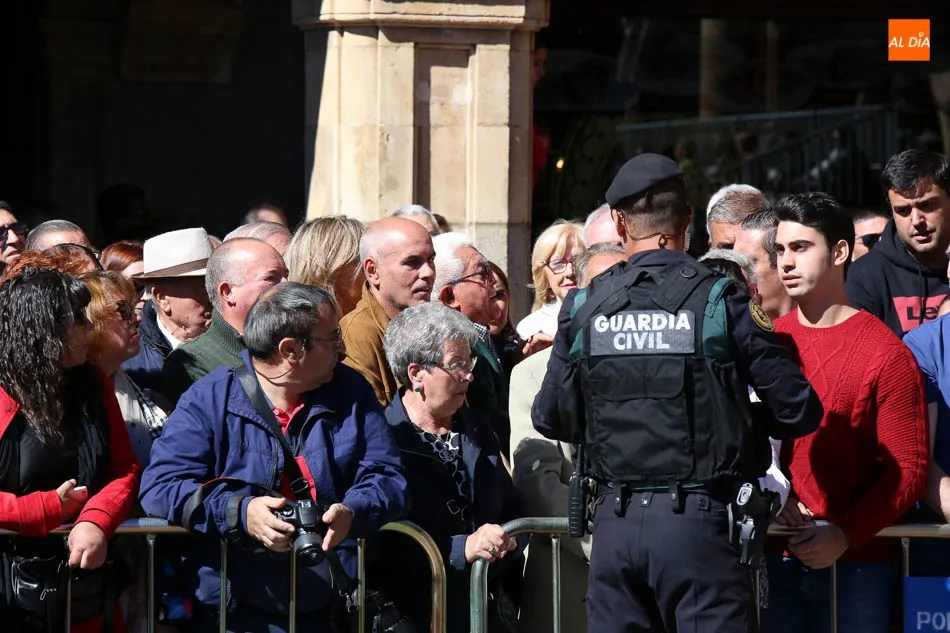 La Plaza Mayor de Salamanca vistió este domingo sus mejores galas para recibir una de las celebraciones más esperadas por la Guardia Civil, el acto castrense enmarcado en las actividades conmemorativas por la festividad de su patrona, la Virgen del Pilar.