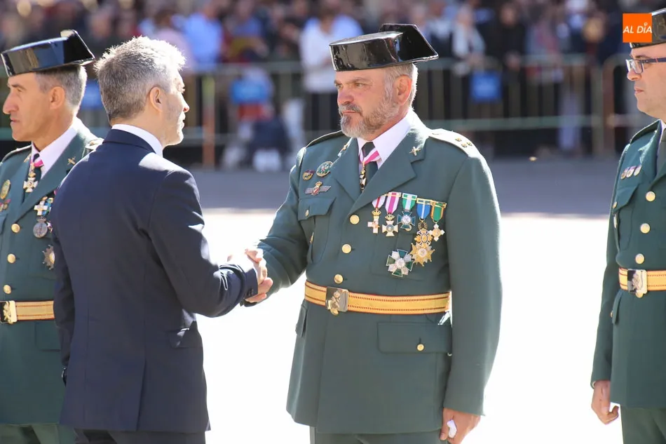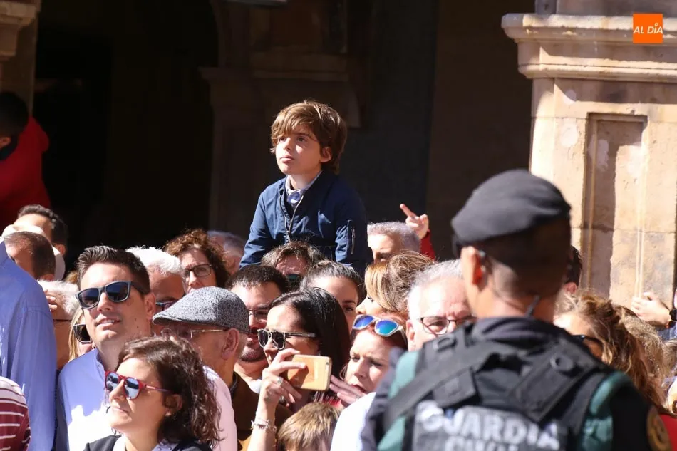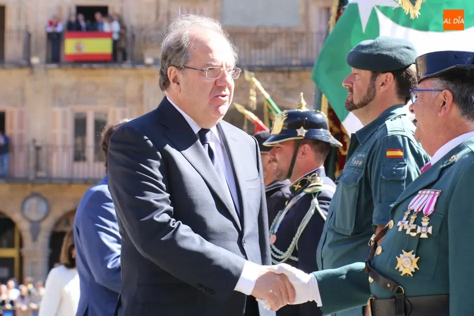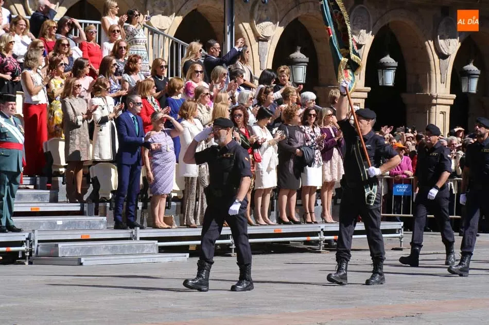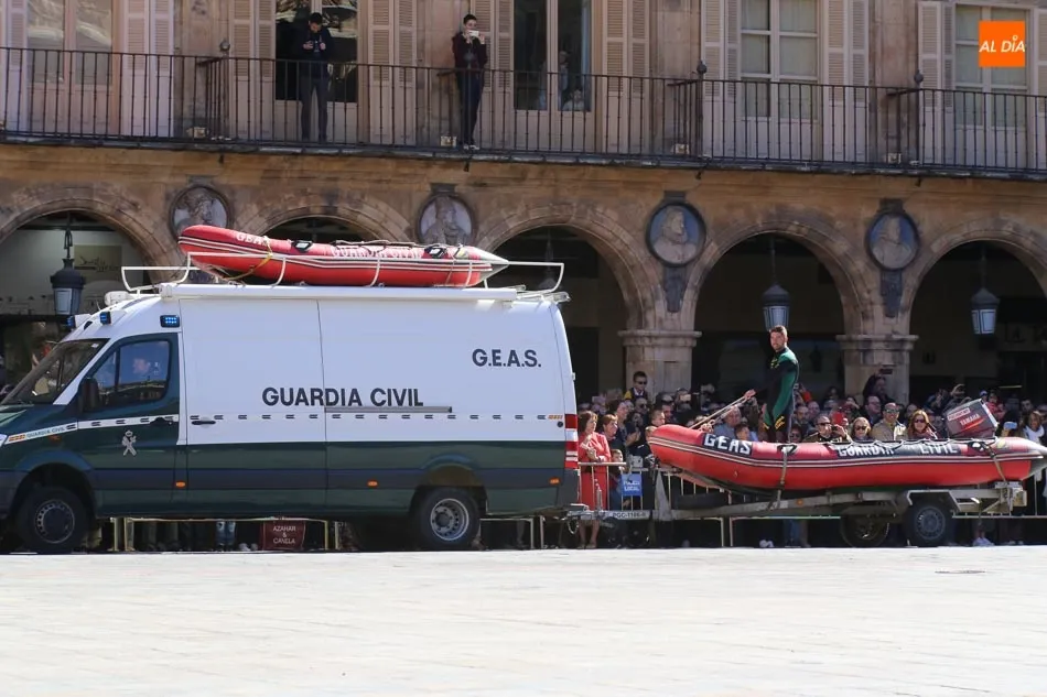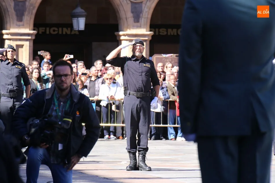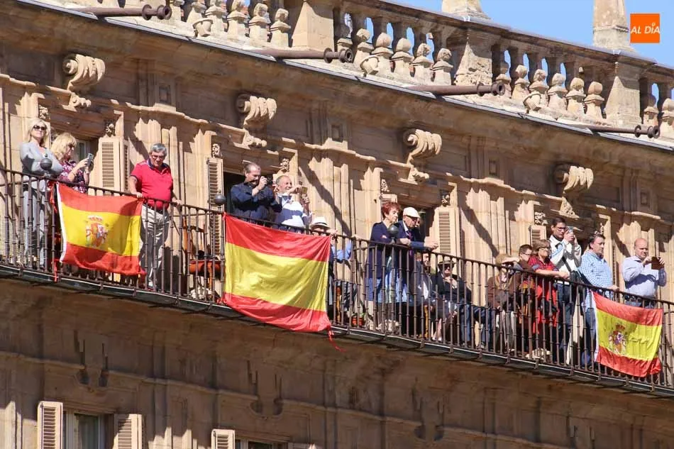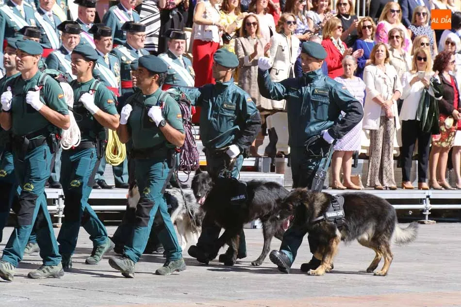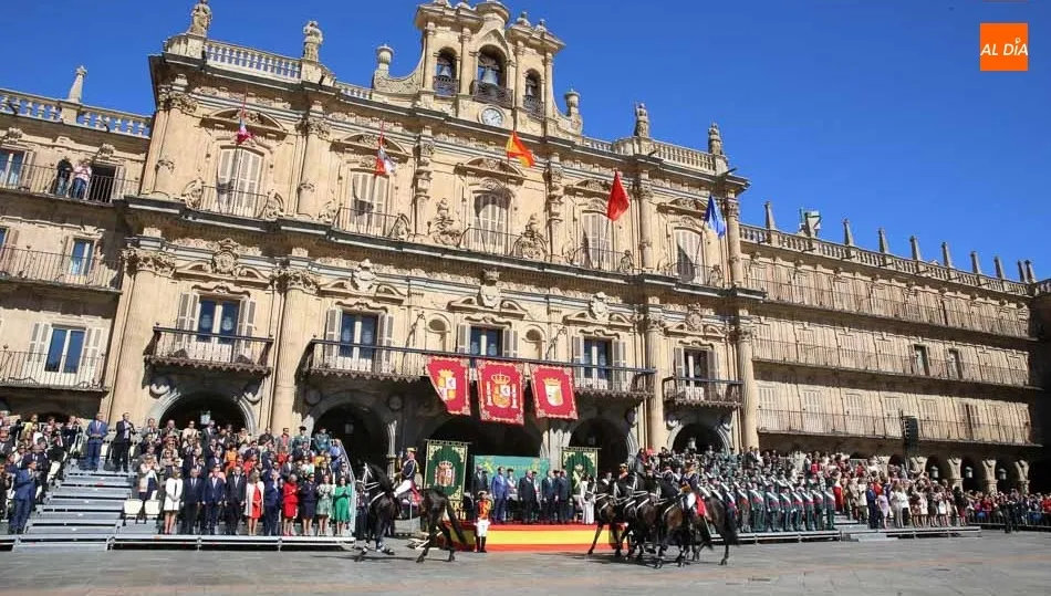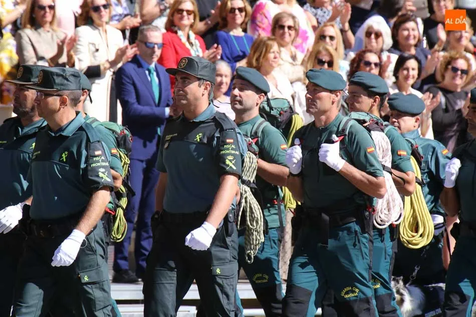 La Plaza Mayor de Salamanca vistió este domingo sus mejores galas para recibir una de las celebraciones más esperadas por la Guardia Civil, el acto castrense enmarcado en las actividades conmemorativas por la festividad de su patrona, la Virgen del Pilar.