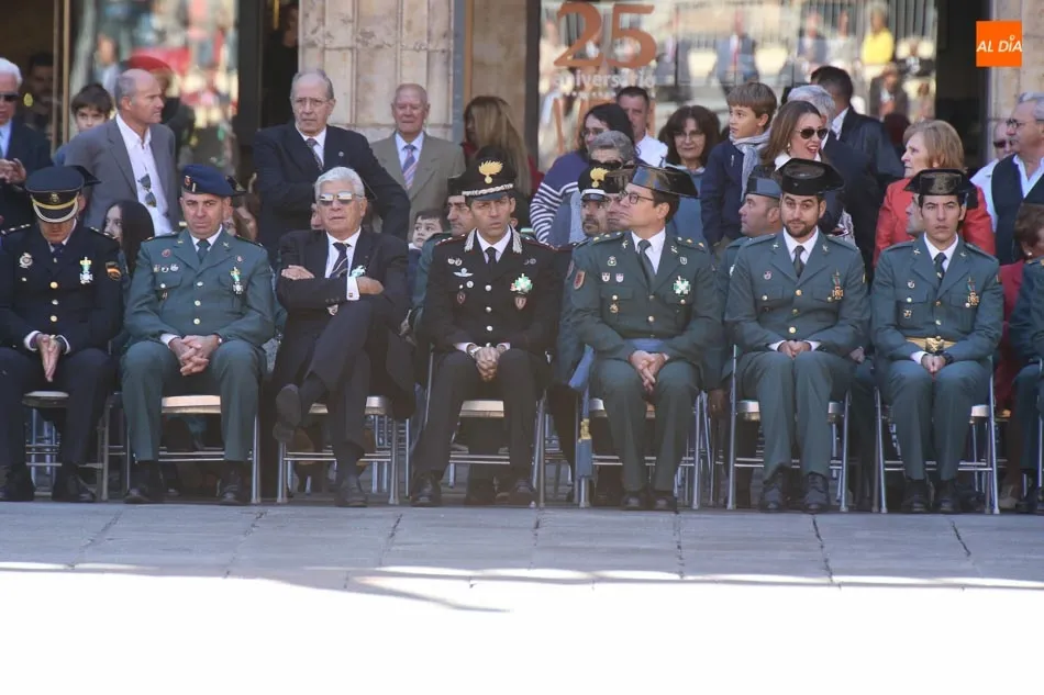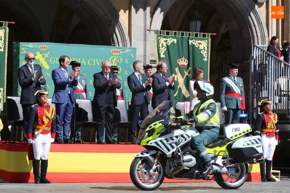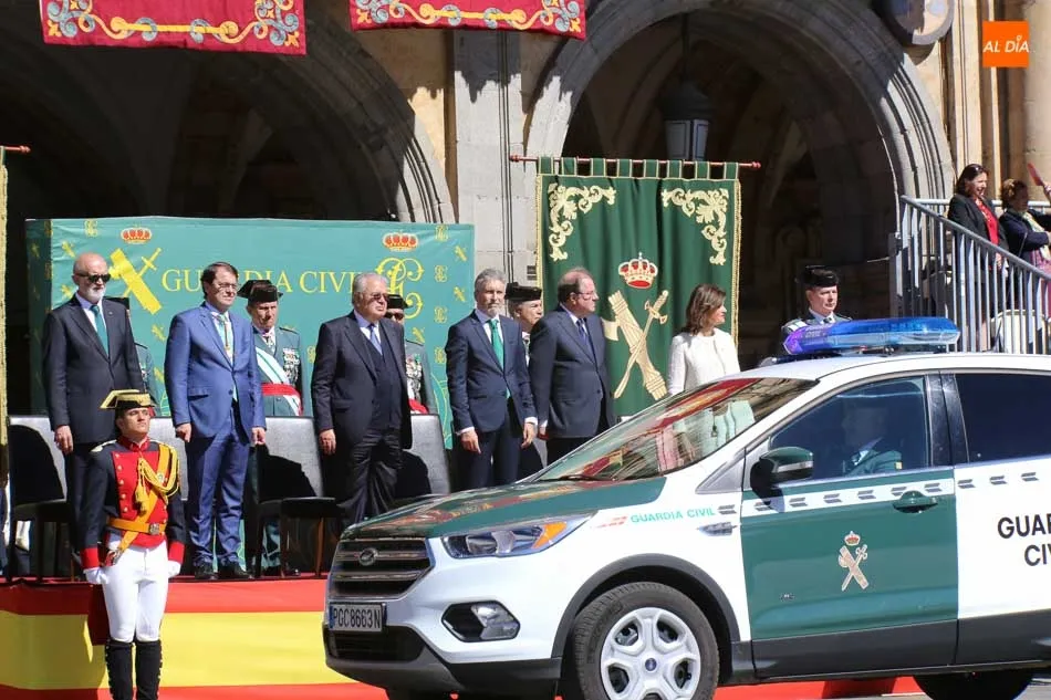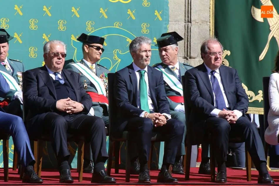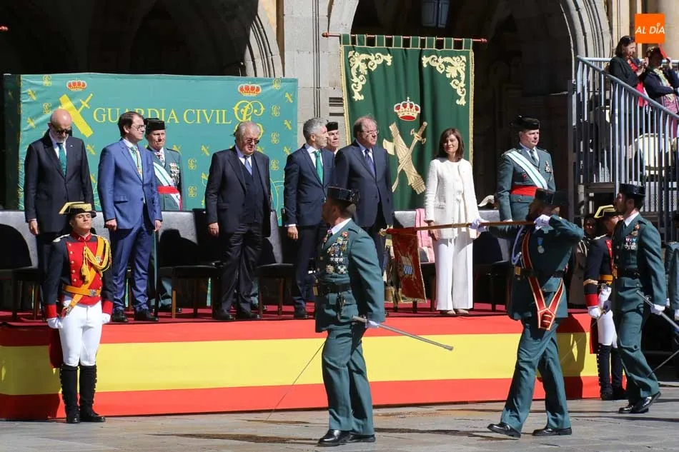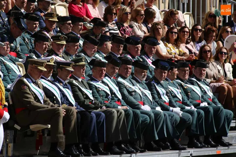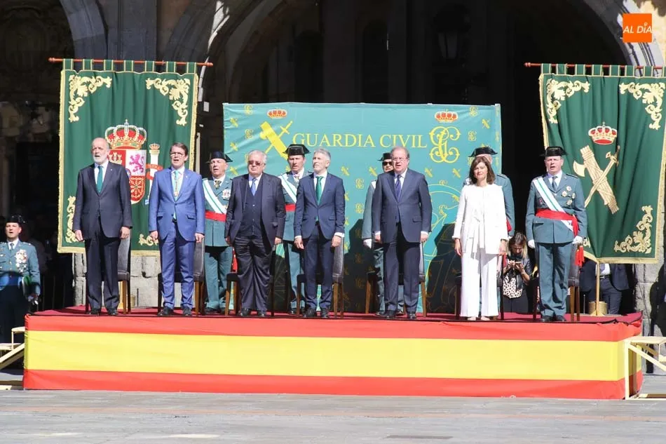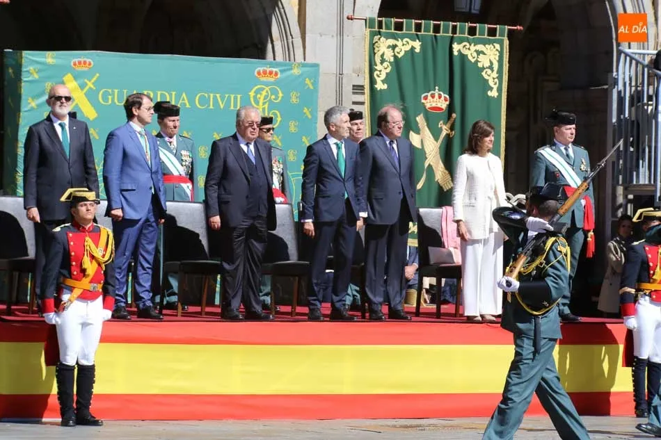 Entre las muchas autoridades asistentes, destacó la presencia de la secretaria de Estado de Seguridad, Ana Botella; el director general de la Guardia Civil, Félix Vicente Azón; el presidente de la Junta, Juan Vicente Herrera; la presidenta de las Cortes de Castilla y León, Silvia Clemente, y el ministro del Interior, Fernando Grande-Marlaska. Este último, fue el encargado de la apertura de la jornada recibiendo los honores y protagonizando un pase de revista de las unidades de la Guardia Civil formadas en la Plaza Mayor.