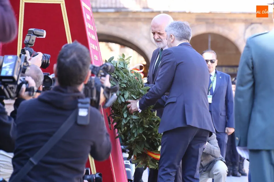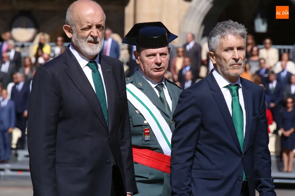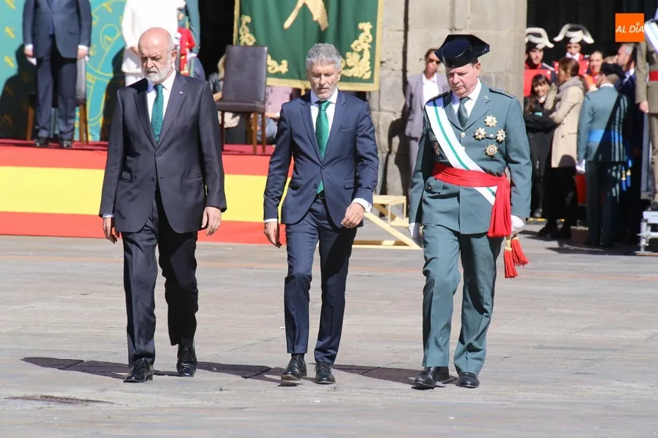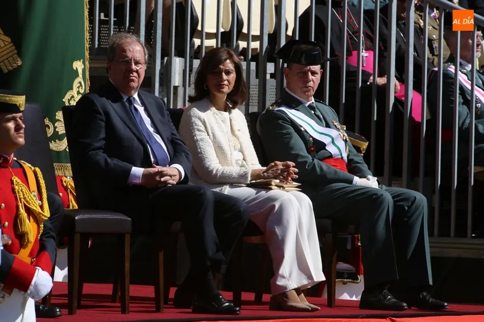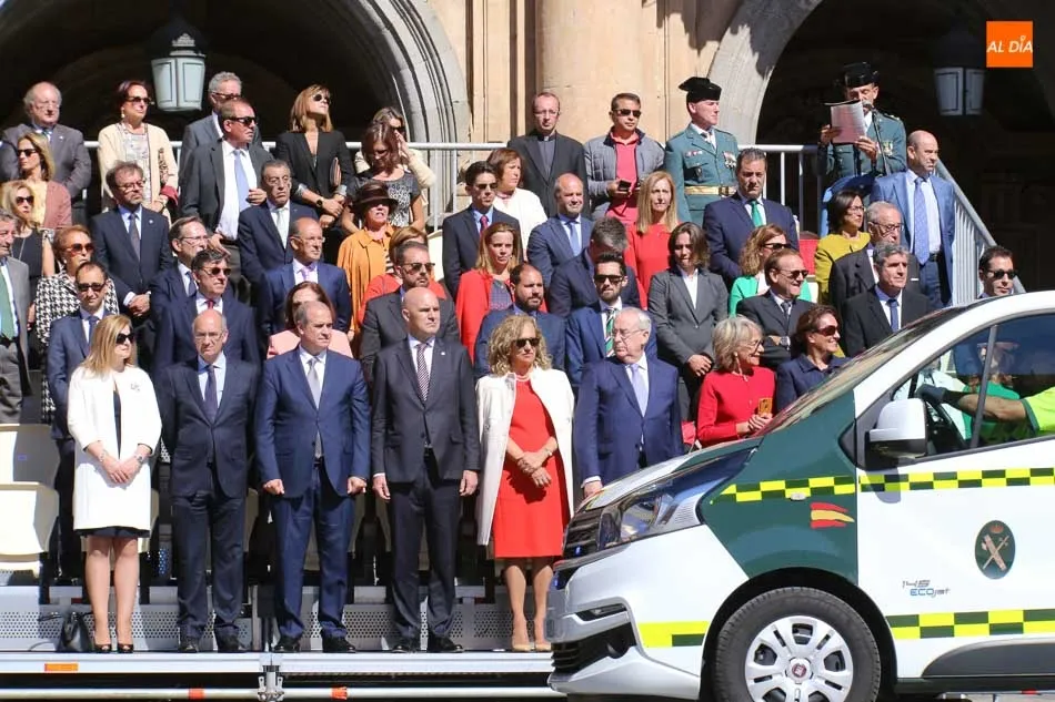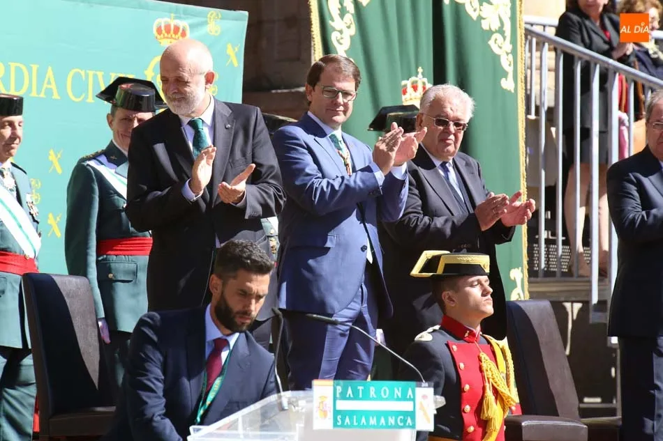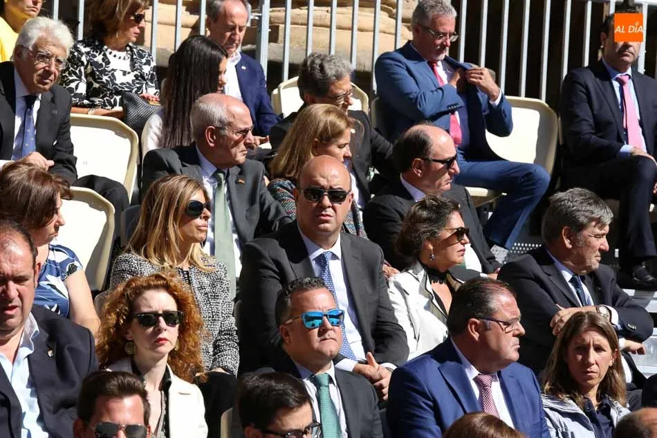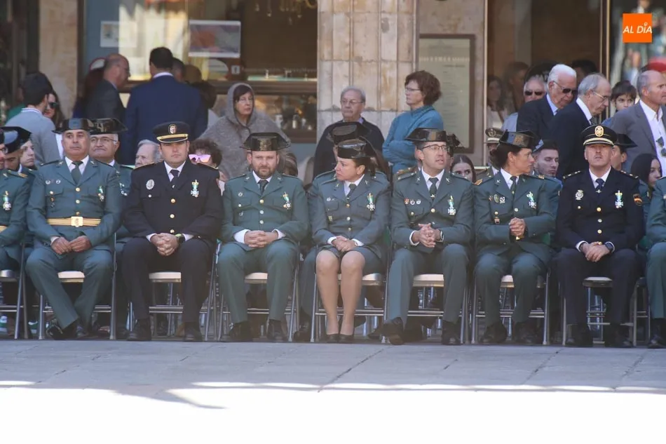 Entre las muchas autoridades asistentes, destacó la presencia de la secretaria de Estado de Seguridad, Ana Botella; el director general de la Guardia Civil, Félix Vicente Azón; el presidente de la Junta, Juan Vicente Herrera; la presidenta de las Cortes de Castilla y León, Silvia Clemente, y el ministro del Interior, Fernando Grande-Marlaska. Este último, fue el encargado de la apertura de la jornada recibiendo los honores y protagonizando un pase de revista de las unidades de la Guardia Civil formadas en la Plaza Mayor.