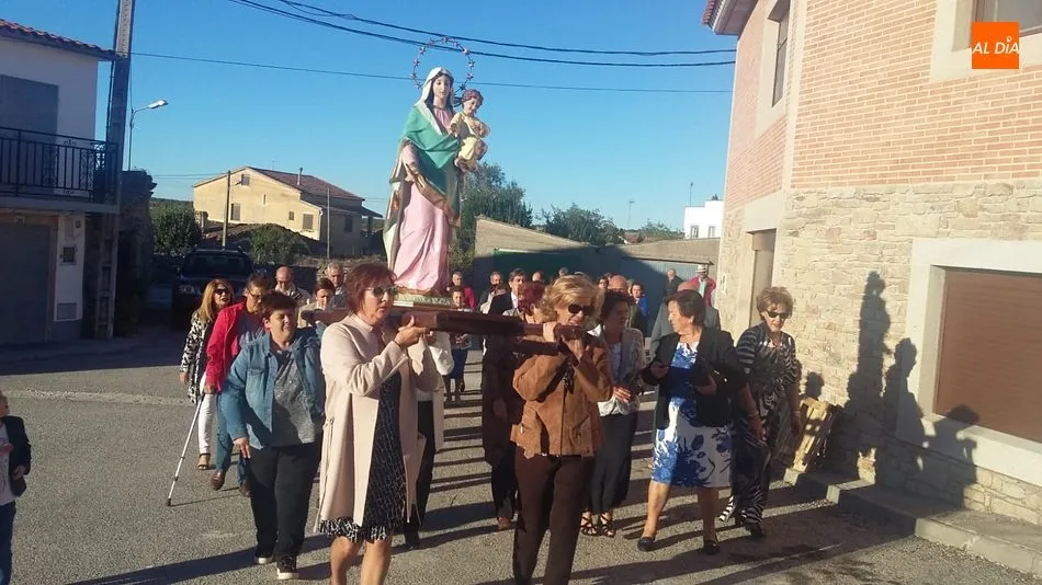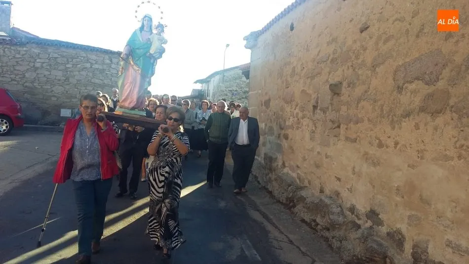 A falta de casaderas, las mujeres de Cipérez se unían para ejercer de Madrinas en la ofrenda a la Virgen del Rosario. Los actos comenzaban en la ermita a las 18,30 horas con la celebración del rosario oficiado por el párroco Javier, para proseguir con la procesión por las calles del pueblo con la imagen de la Virgen del Rosario a hombros de las mujeres.