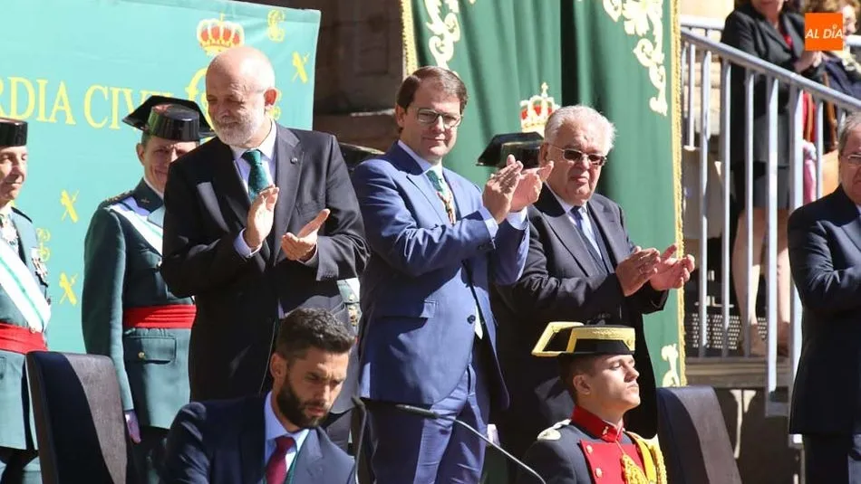 Mañueco también quiso reconocer el valor de la Guardia Civil y su escudo, que representa ?el poder al servicio de la justicia?. ?Hemos tenido la oportunidad esta mañana de ver como la Guardia Civil se ha ido adaptando a los nuevos tiempos, pero siempre con esa vocación de servicio, de estar al lado de las personas que lo necesitan, en cualquier momento, en cualquier lugar?, añadió.