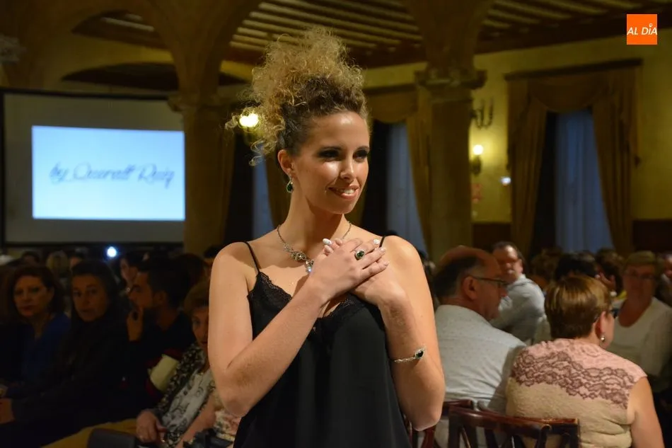 Elegancia, clase y personalidad han caracterizado el desfile de joyería de Queralt Ruiz en el salón central del Casino de Salamanca, donde han destacado los diseños más novedosos de pendientes y pulseras.