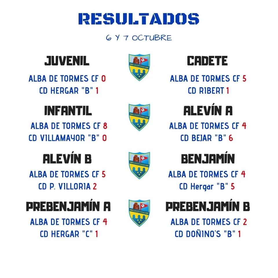 El fin de semana se saldó con cinco victoria y tres derrotas para los ocho equipos del Alba de Tormes Club de Fútbol