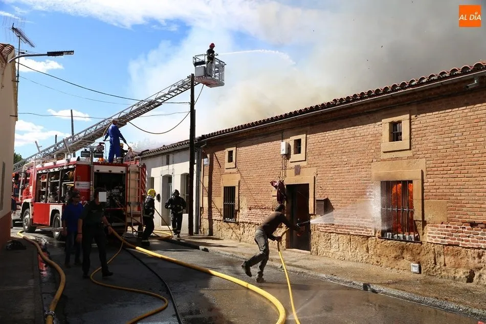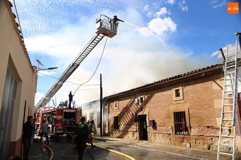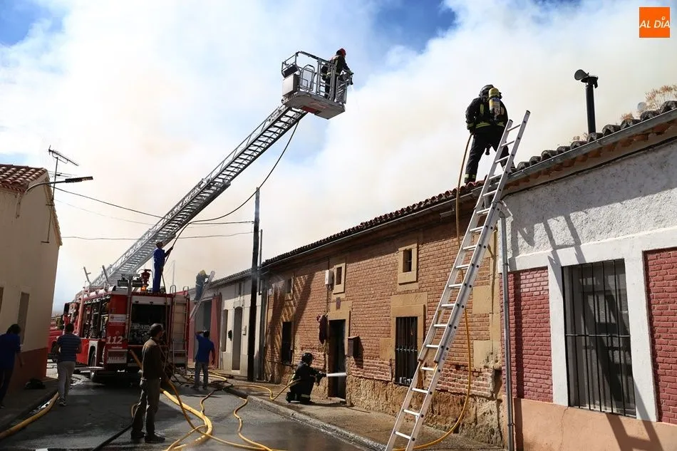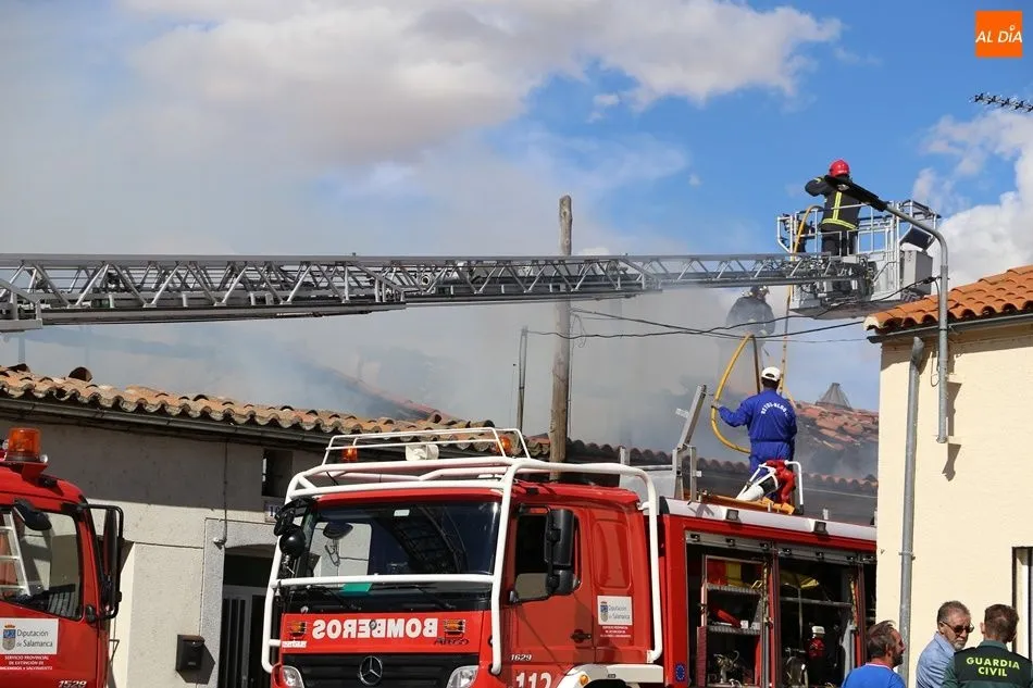 Cuatro dotaciones de bomberos de la Diputación de Salamanca, tres de ellas pertenecientes al parque de Villares de la Reina y una del de Peñaranda de Bracamonte, acudieron para sofocar las llamas. Los bomberos precisaron de un camión escala para acometer las tareas de extinción desde lo alto. Hasta el lugar también se desplazaron varias patrullas de la Guardia Civil.