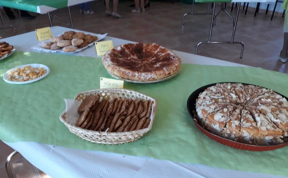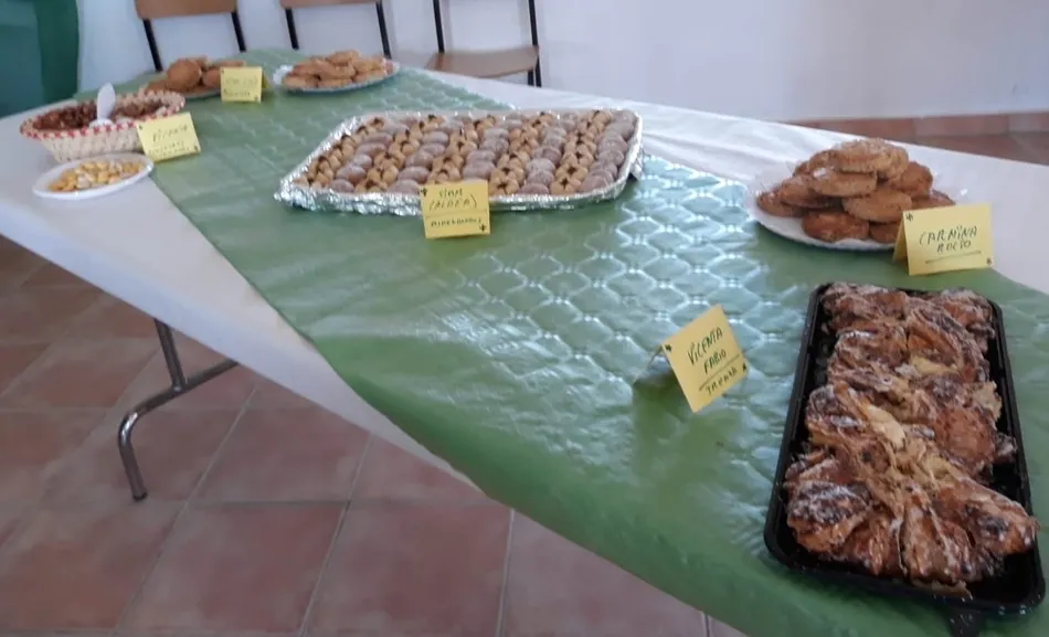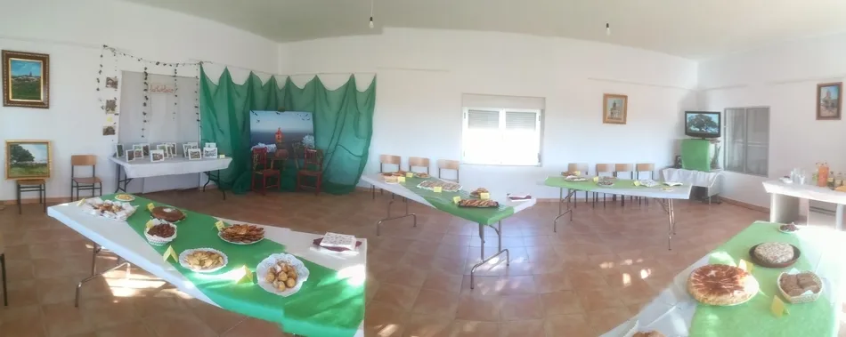 Una vez en el Local (decorado con herramientas y materiales relativos al mundo de la almendra, así como con obras pictóricas de varias artistas, principalmente de Cristina Borboleta), tuvo lugar el momento culminante de la Fiesta: la degustación de los 23 manjares hechos a base de ese producto. Tras la misma, hubo una animada sesión de cánticos y bailes tradicionales, mientras que por la tarde las mujeres del pueblo ofrecieron una merienda.