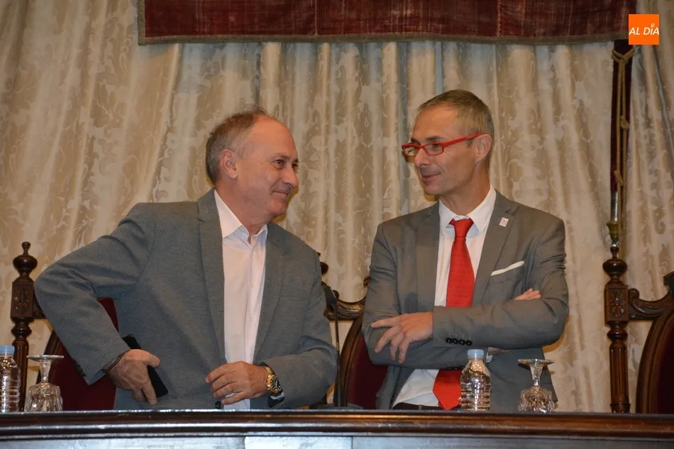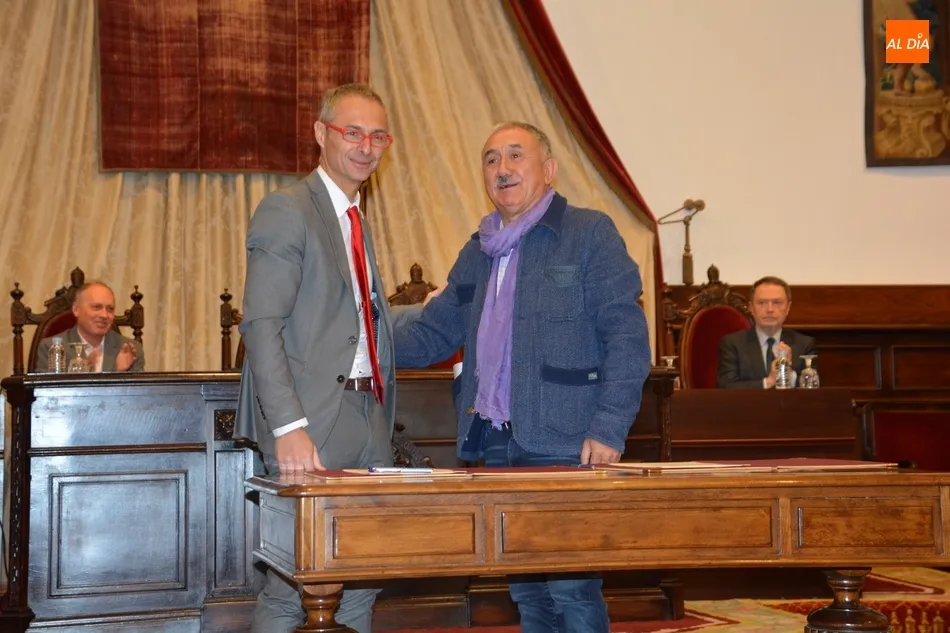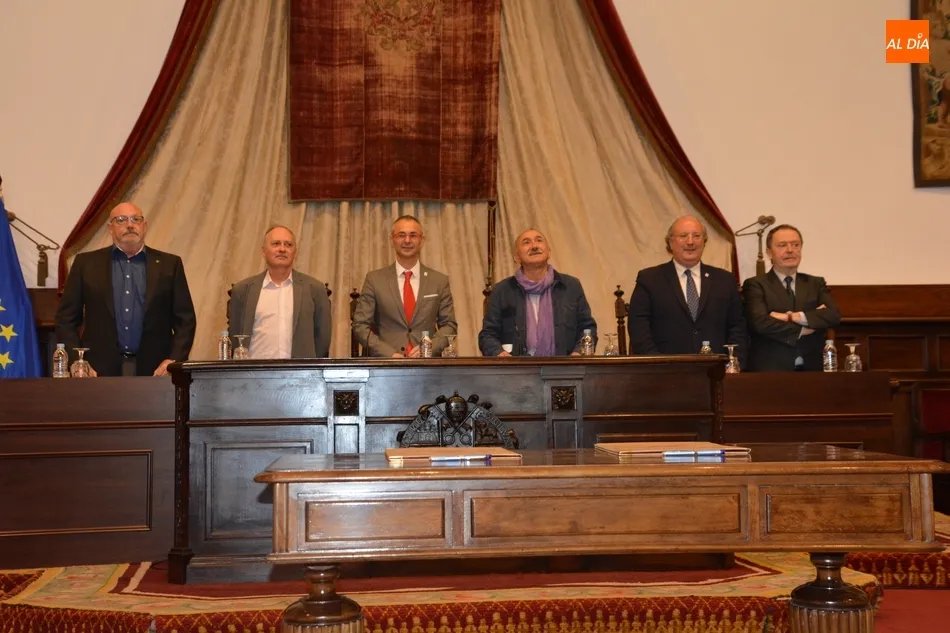 Un acto al que asistían el rector, Ricardo Rivero; el vicerrector de Política Académica y Participación Social, Enrique Cabero; y los secretarios generales de UGT a nivel nacional, regional y provincial José María Álvarez Suárez, Faustino Temprano y José Luis Hernández Rivas, respectivamente.