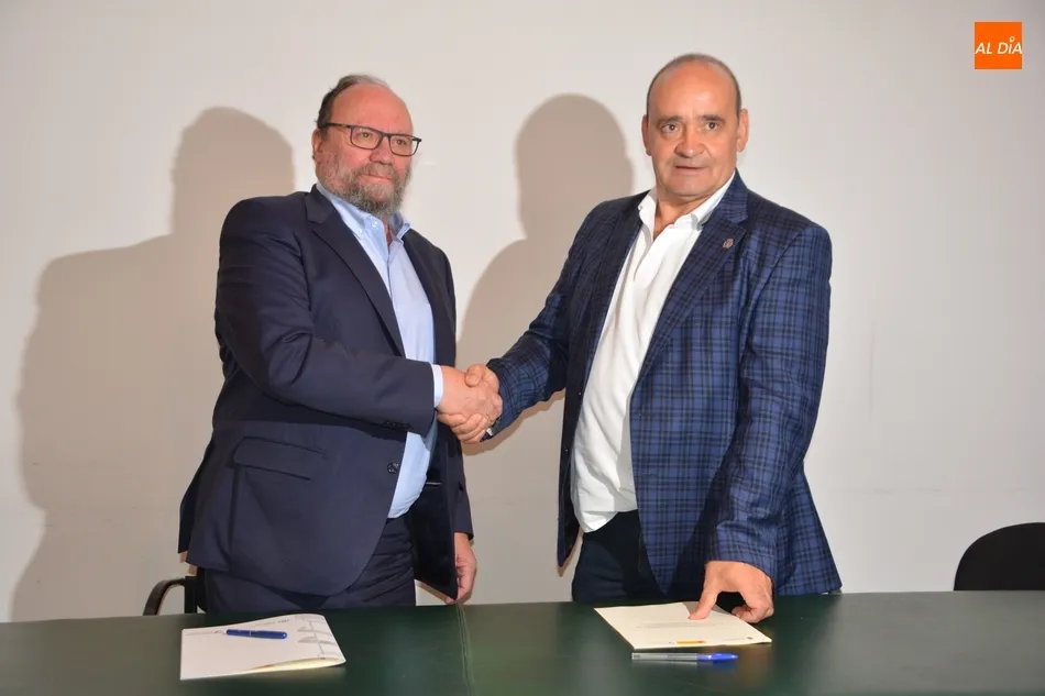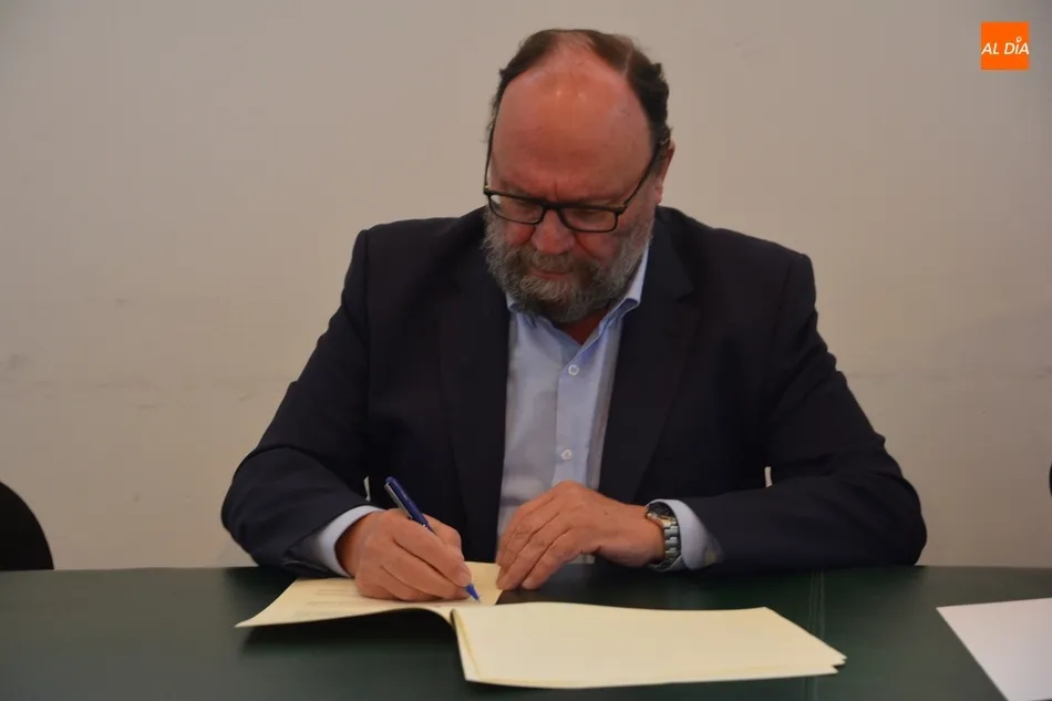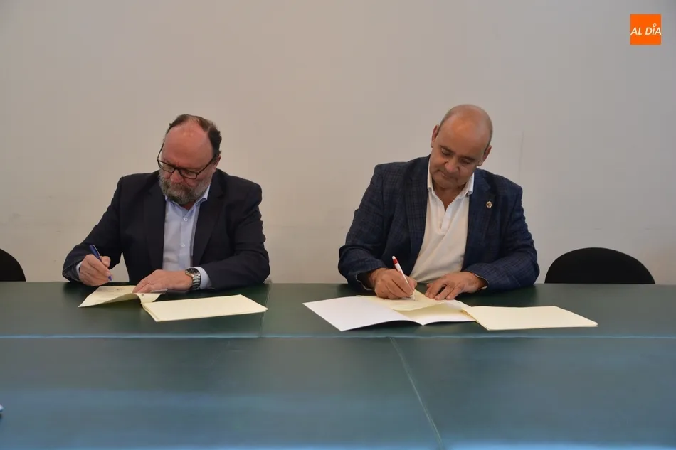Manuel Gago, alcalde de Villamayor de la Armuña, y el presidente del Instituto Geológico Minero de España (IGME), han firmado un convenio de actuación en materia de geología y piedra natural para para el fomento de las ciencias de la tierra y es desarrollo de la cantera de Villamayor.