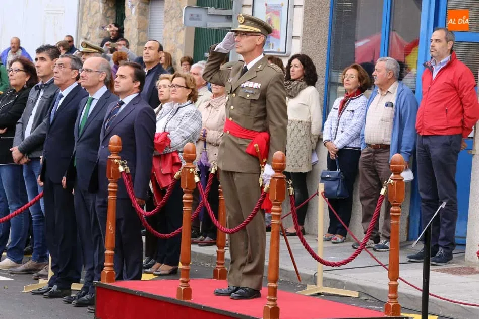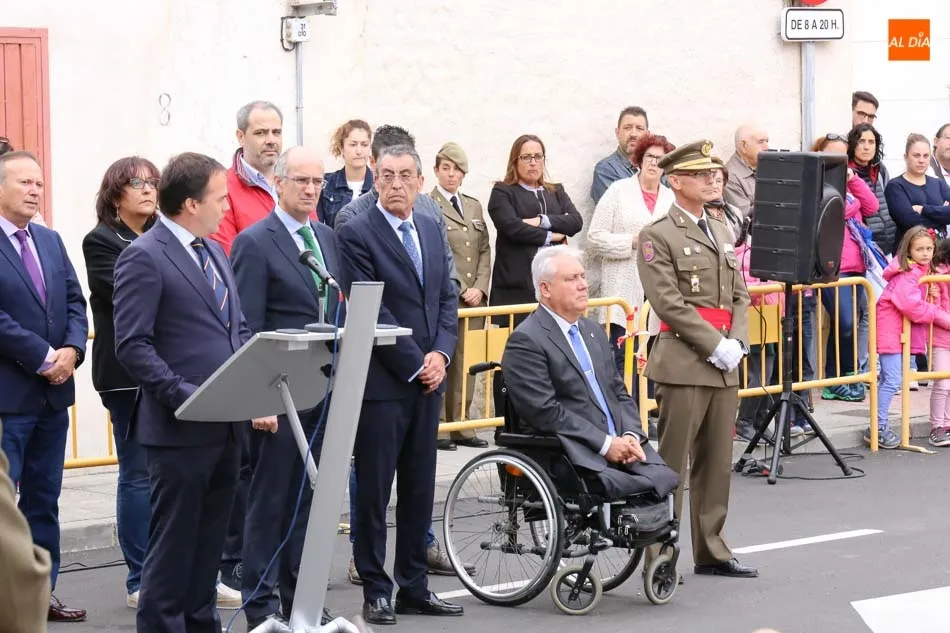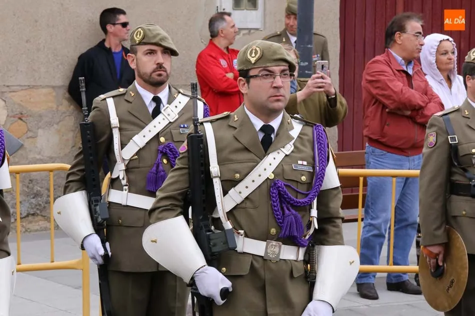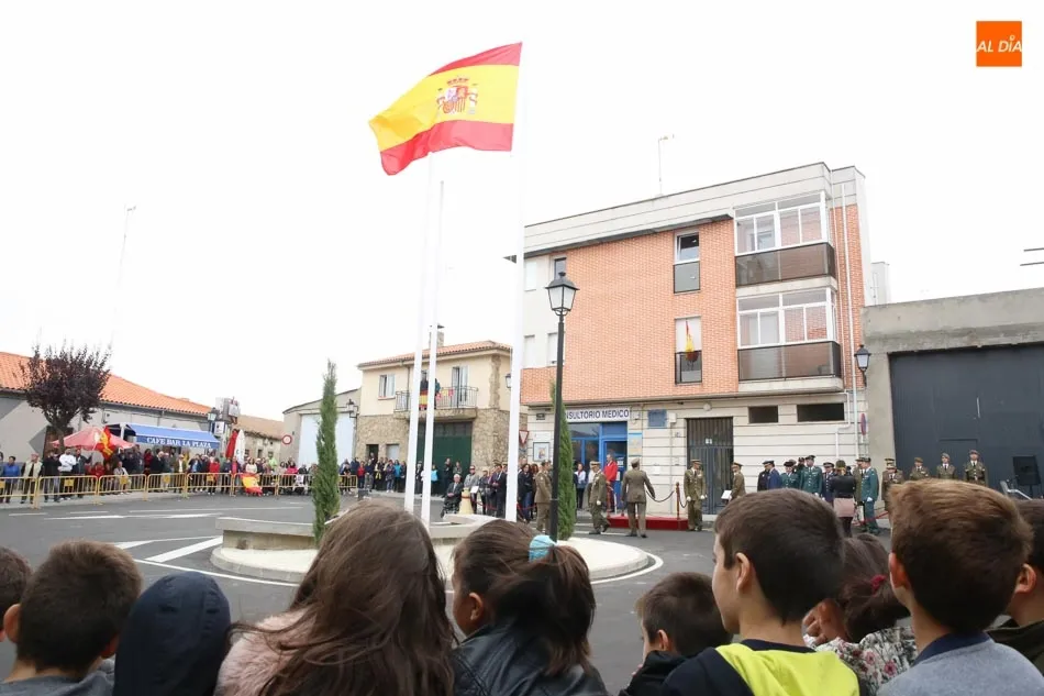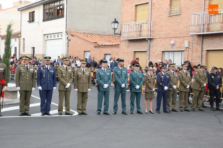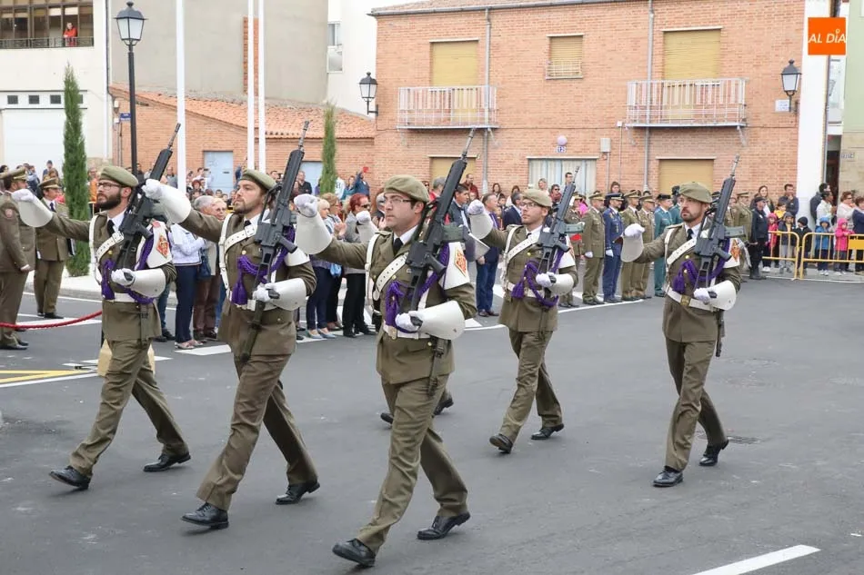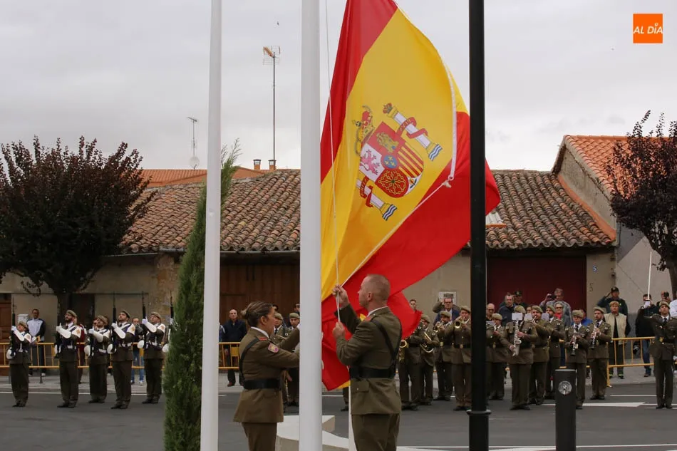 CASTELLANOS DE MORISCOS | La Plaza Mayor ha sido escenario de los solemnes actos que han incluido el izado de la bandera y un desfile militar a cargo del Mando de Ingenieros