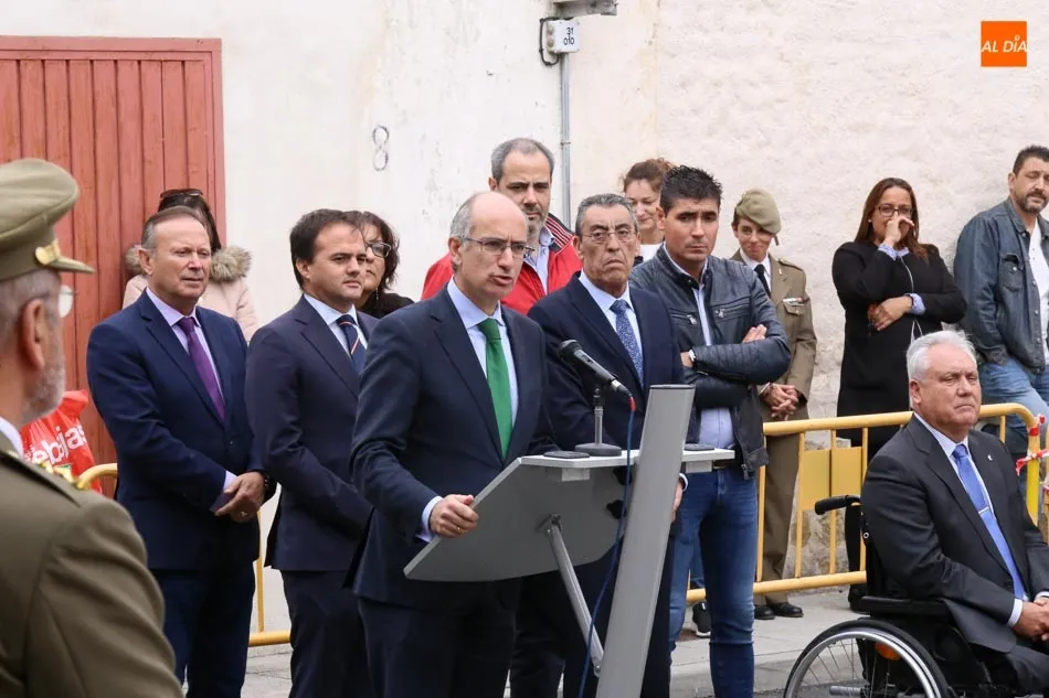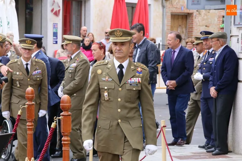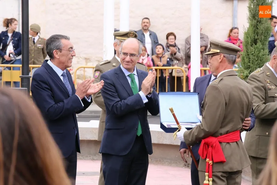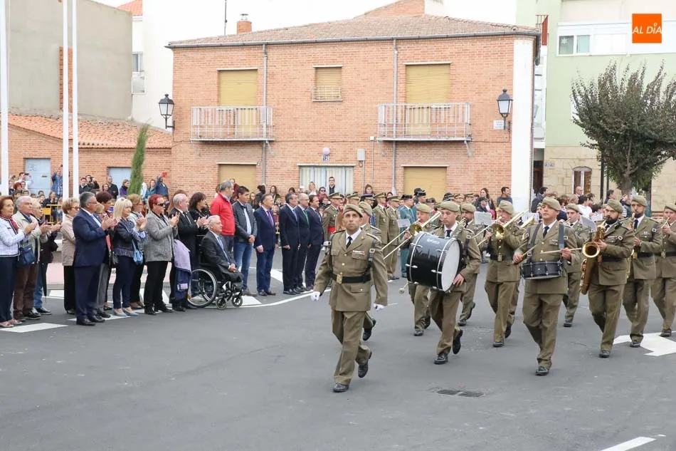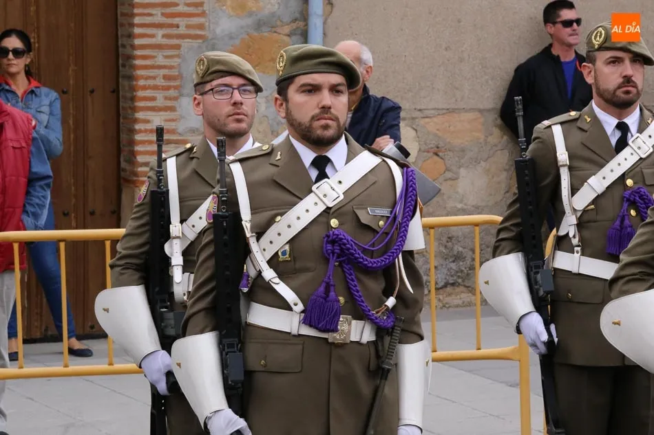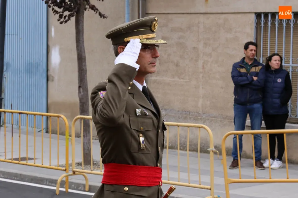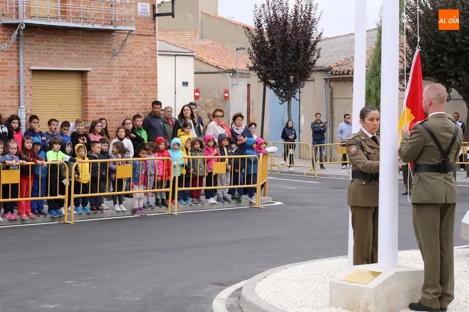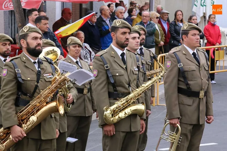 CASTELLANOS DE MORISCOS | La Plaza Mayor ha sido escenario de los solemnes actos que han incluido el izado de la bandera y un desfile militar a cargo del Mando de Ingenieros