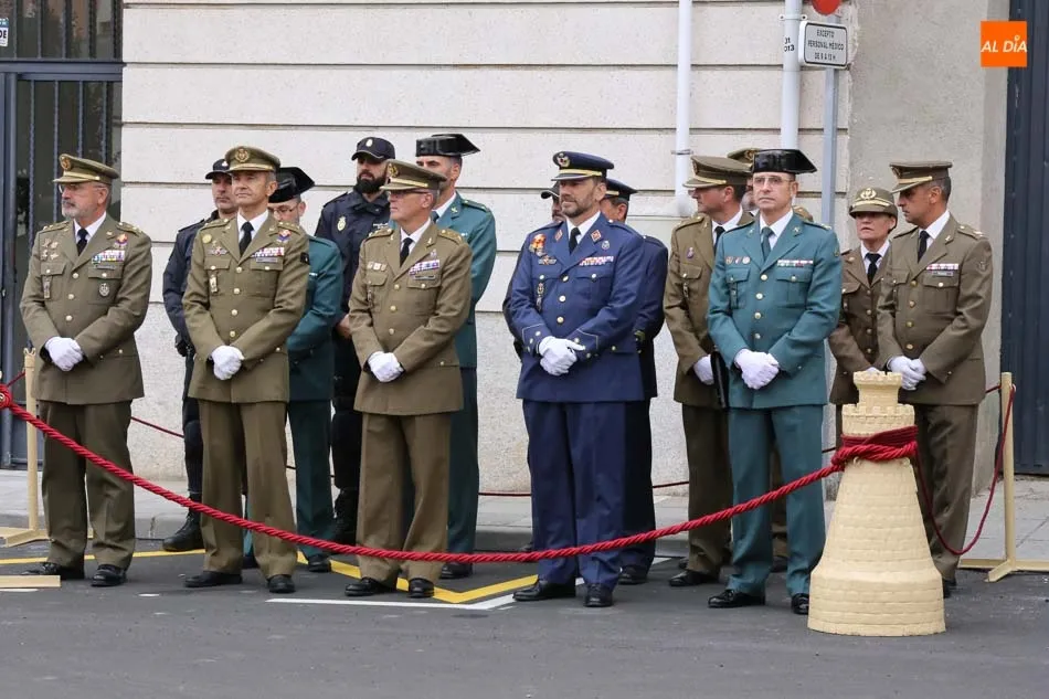 La celebración ha comenzado con el izado de la bandera, presidido por el jefe del Mando de Ingenieros, Juan Manuel Broncano, y acompañado por el himno nacional, para continuar con el desfile por los alrededores de la Plaza Mayor a cargo del Regimiento de Especialidades nº 11 de Salamanca.