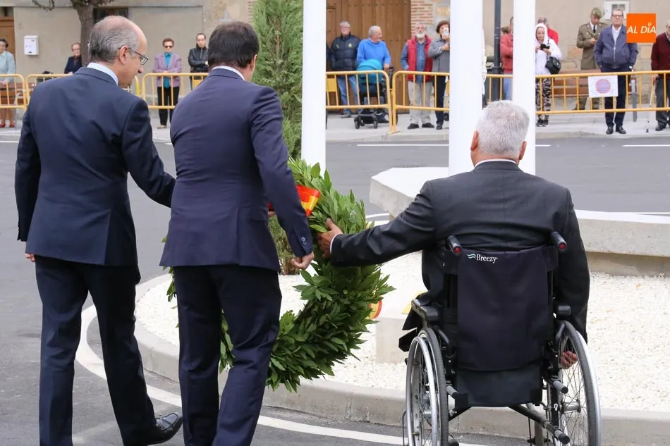 El homenaje a la bandera, al que han asistido el presidente de la Diputación, Javier Iglesias, el delegado de la Junta, Bienvenido Mena, y los miembros de la Corporación municipal, ha sido este año también un reconocimiento a las víctimas del terrorismo, representadas por el comandante Juan José Aliste, quien, acompañado por el alcalde, ha depositado una corona de laurel junto al monolito en homenaje a ?todos los que dieron su vida por España?.