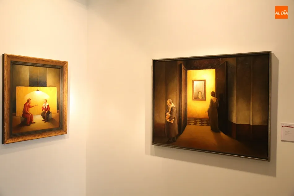 'Pinturas leídas? está compuesta por más de 40 obras con las que el autor ?invita al espectador a reflexionar sobre lo que estamos viendo y sobre nosotros mismos, ya que sus pinturas muestran el mundo de lo aparente, donde nada es lo que parece?, ha señalado Julián Barrera, en referencia también a los magníficos textos de Elena Mesonero, hija del artista, que acompañan a cada uno de los cuadros realizados en óleo sobre lienzo.