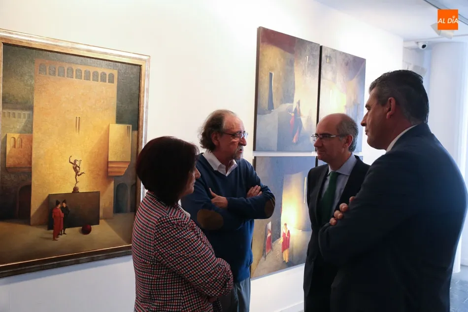 La sala de exposiciones La Salina acoge hasta el próximo 11 de noviembre la muestra ?Pinturas leídas? del peñarandino Alejandro Mesonero. En la inauguración de la exposición, el artista ha estado acompañado por el presidente de la Diputación, Javier Iglesias, el diputado de Cultura, Julián Barrera, y la alcaldesa de Peñaranda, Carmen Ávila.