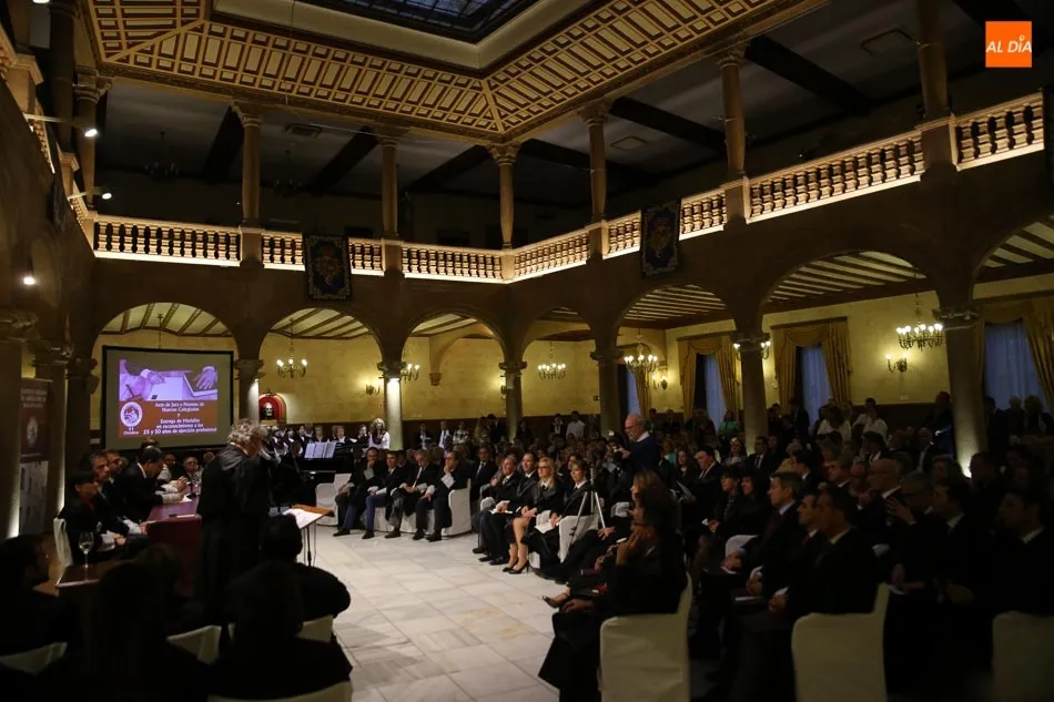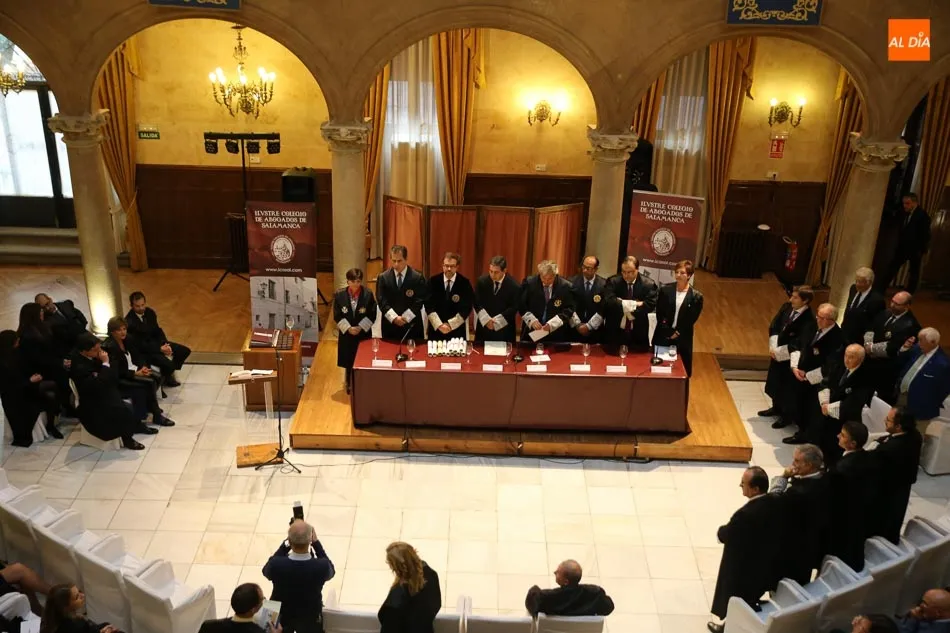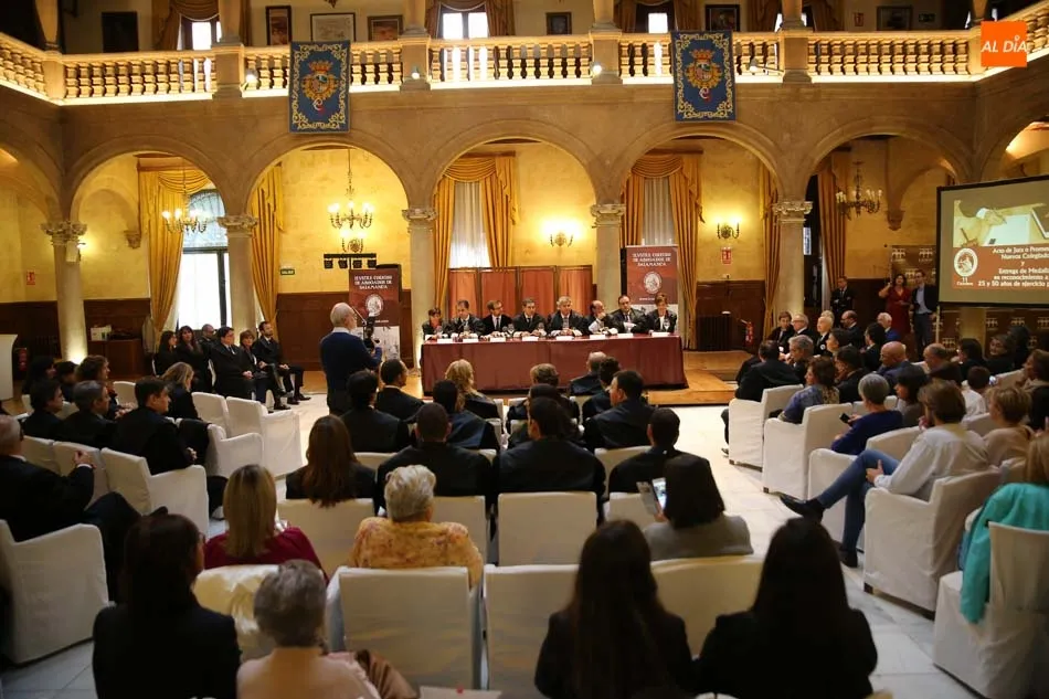 A las 19 horas, en el Casino de Salamanca (Palacio de Figueroa) se ha celebrado el solemne acto de Jura o Promesa de Nuevos Colegiados y entrega de medallas a los compañeros que cumplen 25 años de ejercicio profesional, que este año son los siguientes: Patricia Barbero Franco, Óscar Antonio Barbero García, Germán Caballero López, Moisés Cabrera Ramos, Felipe Castillo Holgado, Felipe José Crespo Fradejas, Francisco José de Vicente Velasco, Lorenzo Fuentes De Antonio, Jesús Antonio García Carrero, Sebastián González Martín, María Azucena Hernández Del Canto, Elvira Hernández Hernández, María Jesús Iglesias García, María Jesús Iglesias Sánchez, Juan María Lavado Sánchez, Jesús Lluch Tejero, Fernando Javier Lopez Álvarez, María Manuela Lorenzo Domínguez, Fernando Lozano Sánchez, Ricardo Marcos Hernández, Ángel Luís Martín Cruz, José Antonio Martín Jiménez, Vega Martín Juanes, Carlos Eugenio Martín Palomero, Javier Meana Gutiérrez, Ángel José Miguel Del Corral Miguel Del Corral, María José Morales Gallego, María José Moreno Domínguez, César Palomo Jiménez, Antonio Peix García, Gonzalo Pérez García, Pedro Alberto Pérez Pérez, Francisco José Ramos Vega, Francisco Javier Represa Fernández, Jesús María San Matías Bernal, Marta María De Los Ángeles Sánchez García, María Oliva Sánchez Rodríguez, Amparo Santamartína Aroca, Alberto Eladio Santiago Montero, Enrique Sanz Fernández-Lomana, María Ángeles Silva González, Fernando Simón-Moretón Martín, José Luis Simón-Moretón Martín, Fernando Vegas Sánchez. Al término del acto se entregan las medallas de oro a los compañeros Manuel Calvo Úbeda y Cándido Casanueva Madrazo en merecido reconocimiento a toda una vida dedicada a la defensa de los derechos de los ciudadanos.