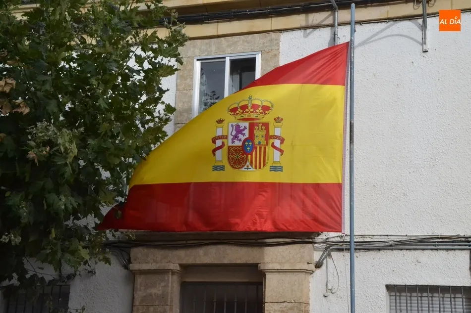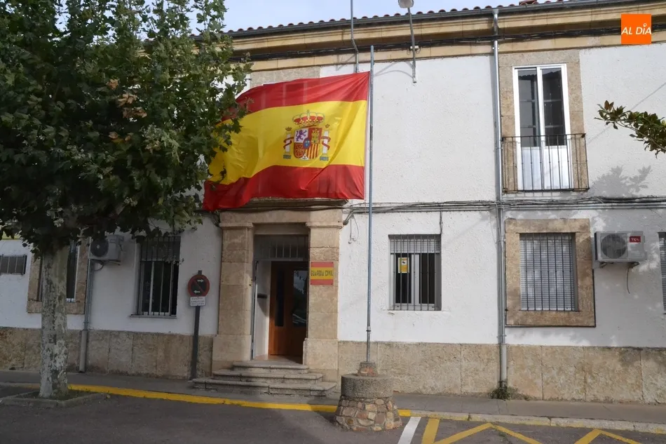CIUDAD RODRIGO | Una enseña española de gran tamaño presidió durante la jornada del viernes la entrada al Cuartel de la Guardia Civil