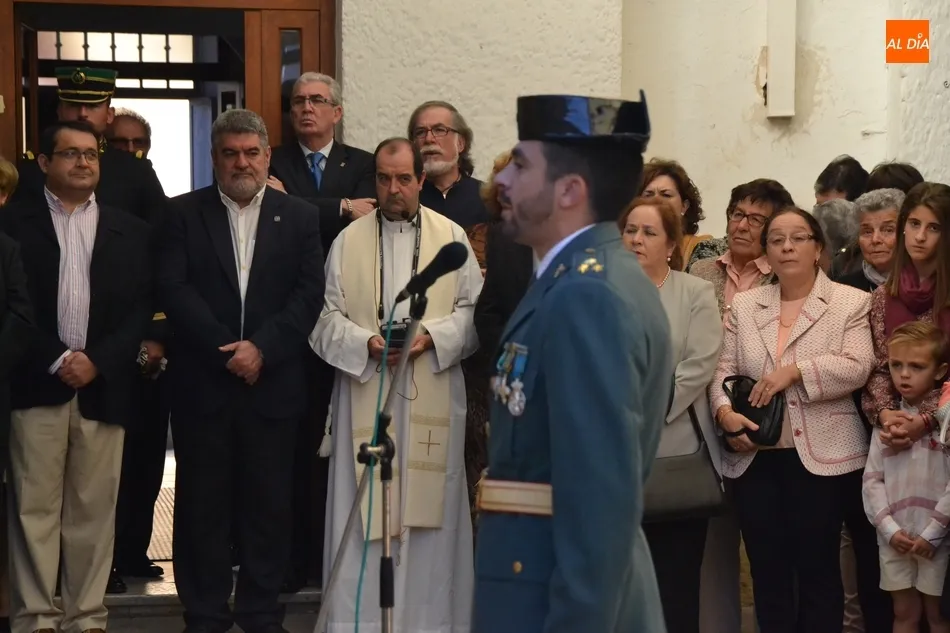 Ese acto incluyó un pequeño discurso de bienvenida por parte del Capitán de la Compañía de Ciudad Rodrigo, Santiago Ruiz Fernández, quién recordó la próxima conmemoración del 175 aniversario de la Benemérita, resaltando que en la misma ?sobrevive el ideario de ayudar a los demás?. A continuación, el Capitán y los agentes presentes cantaron el Himno de la Guardia Civil.