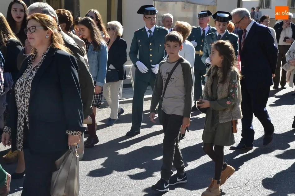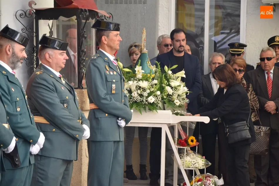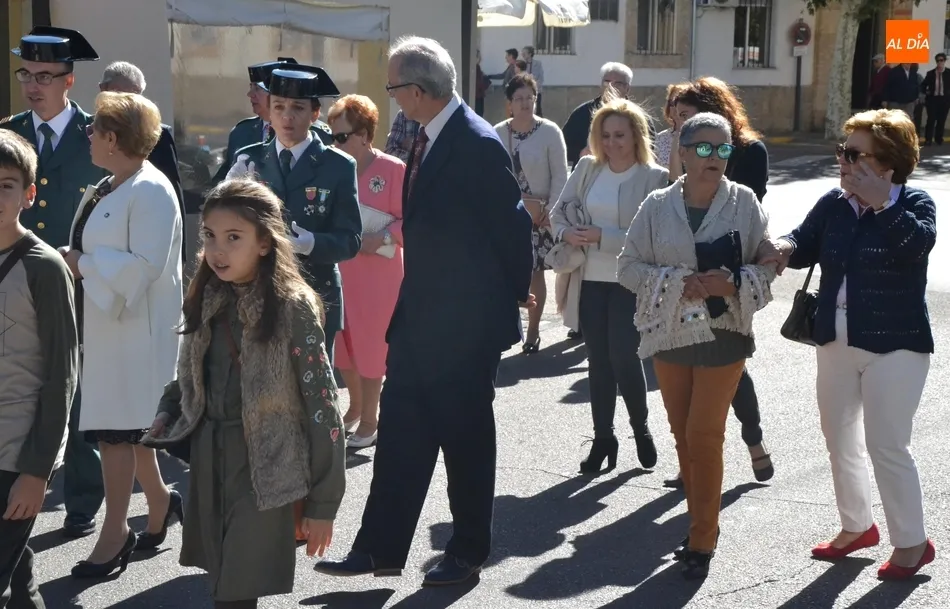 Hace un año, la Guardia Civil de Ciudad Rodrigo vivió la celebración más multitudinaria ?al menos de los últimos tiempos- de su patrona, la Virgen del Pilar, al hilo de la situación política y social que se estaba produciendo en Cataluña. Como se recordara, a las puertas del Cuartel se concentraron un amplísimo grupo de mirobrigenses (incluido Tato Galerías con su autobús), muchos de ellos con banderas españolas, para mostrar su apoyo a la Guardia Civil.