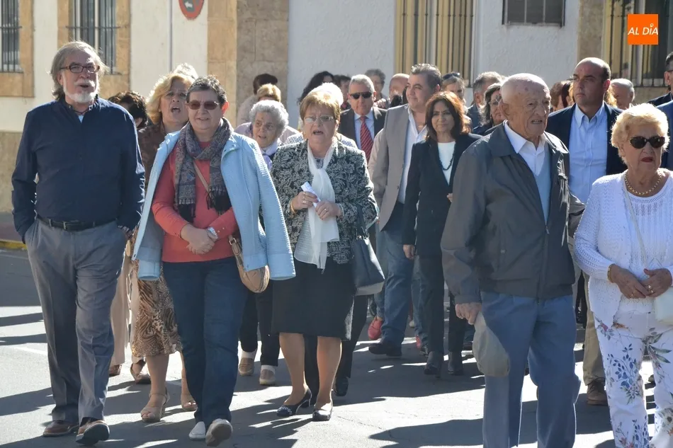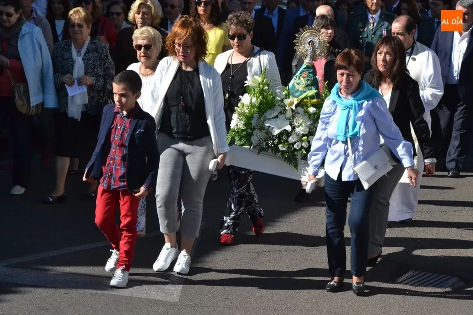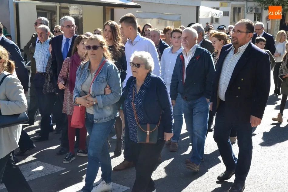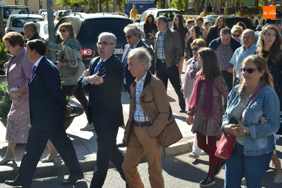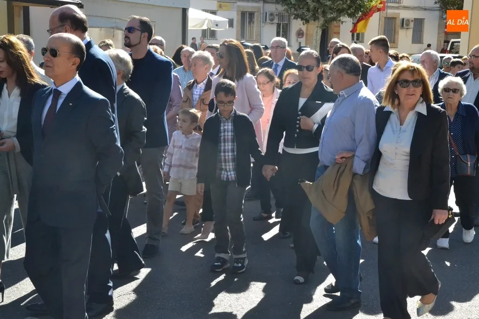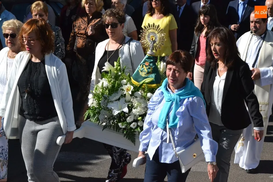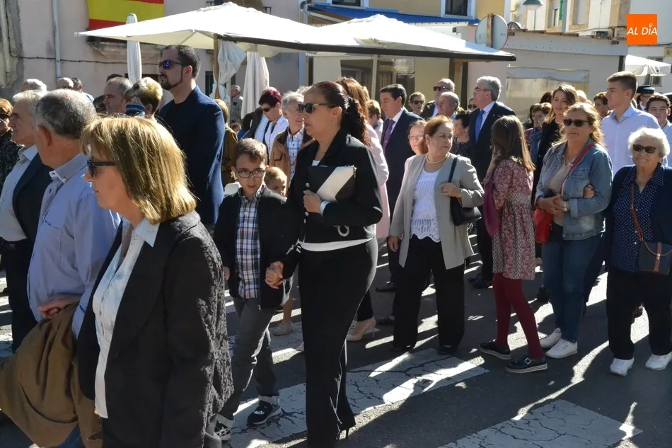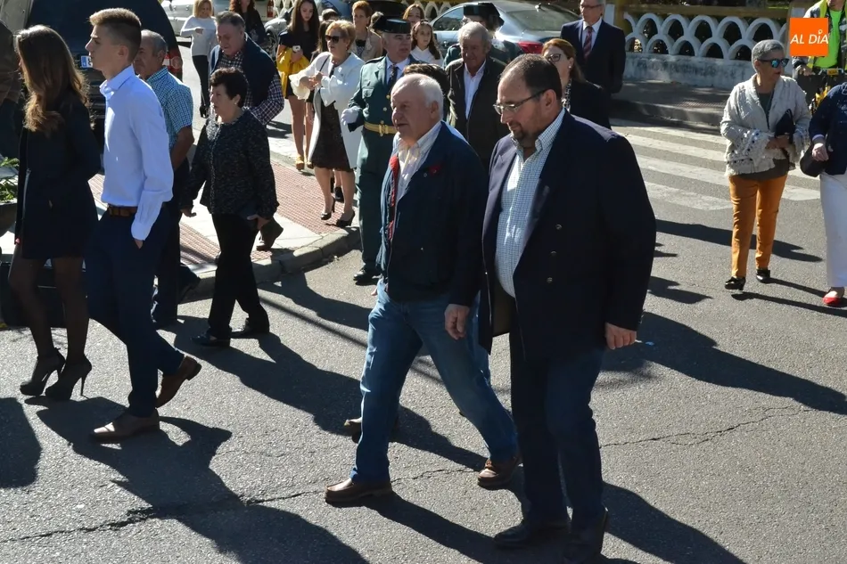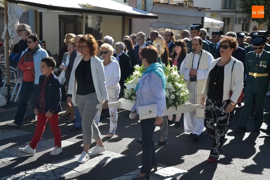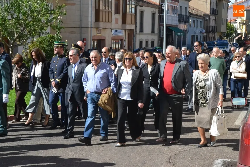 Tras ello, tomó la palabra el párroco de San Cristóbal, Rafael Caño, quién dirigió una oración y la interpretación por parte de una serie de fieles del Himno de la Virgen del Pilar. Finalizado el acto en el Cuartel, llegó la hora de procesionar la imagen de la Virgen, que como es tradición fue portada durante la mayor parte del recorrido por mujeres familiares de agentes. La procesión, en una mañana soleada y con buena temperatura, transcurrió por las calles Laguna, Lorenza Iglesias y San Cristóbal en dirección a la Parroquia homónima.