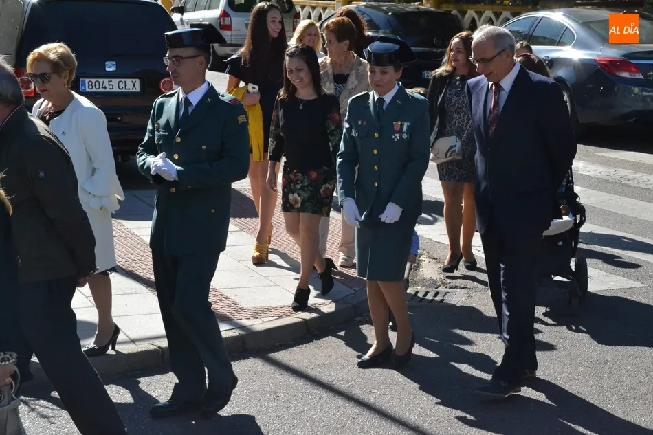 Los actos festivos comenzaron como es habitual en el patio del Cuartel de la Guardia Civil, con la recepción por parte de esos agentes a sus familiares y a las diversas autoridades. En materia política, se dieron cita el procurador en Cortes Juan Luis Cepa, el presidente de la Diputación Javier Iglesias, el alcalde de Ciudad Rodrigo Juan Tomás Muñoz, el alcalde de Fuenteguinaldo Dionisio Sánchez, el alcalde de Sancti-Spíritus Bienvenido Garduño, y los concejales de Ciudad Rodrigo Begoña Moro, Joaquín Pellicer, Cristian González, Marcos Iglesias, Ramón Sastre, Jesús Sánchez Agudo, Miguel Matías Rubio y José Manuel Jerez.