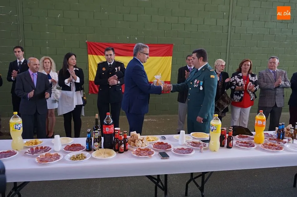El alcalde, Julián Ramos, encabezó a la Corporación Municipal en su última fiesta de la Hispanidad en el cargo, por ello, agradeció la labor social de los agentes de la Guardia Civil e hizo entrega de un presente al cabo Roberto Ramos Rico. Este último dio las gracias al Consistorio por su apoyo y al público por arropar al Cuerpo durante el día de la Patrona. Rico actuó en nombre de los agentes ya que el teniente ha sido destinado a Salamanca y el sargento se tuvo que ausentar por motivos de salud.
