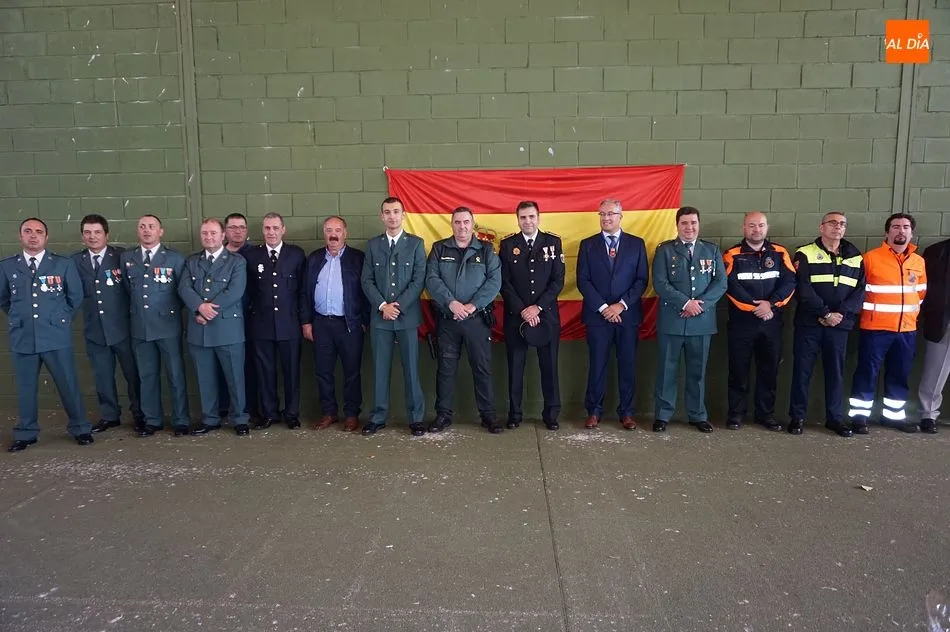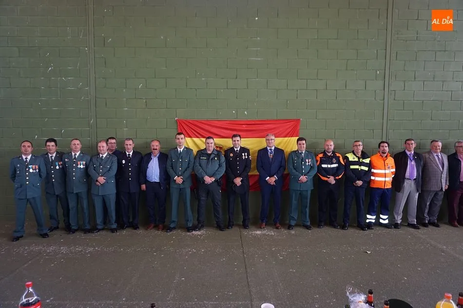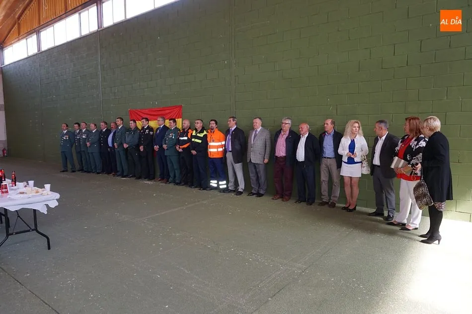 Además de los agentes del Instituto Armado, acudieron a la cita varios miembros del cuerpo local de policía y voluntarios de la Agrupación de Protección Civil de la villa, además de otras autoridades como el Juez de Paz, José Conde.