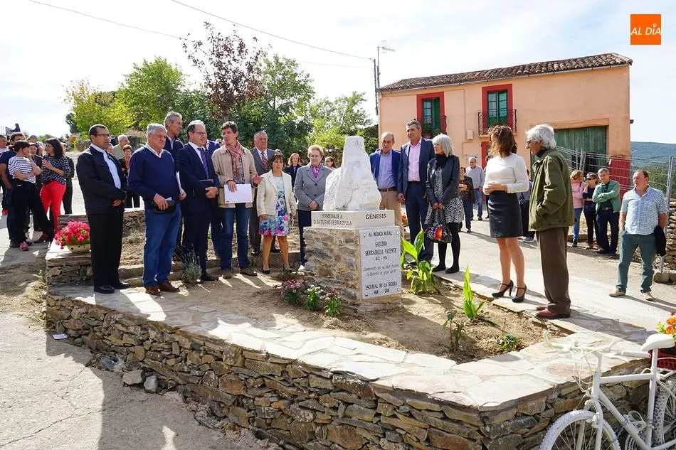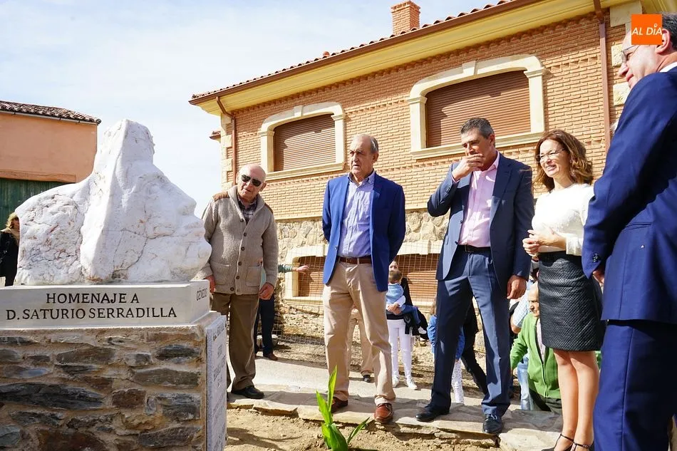 El Ayuntamiento al completo, encabezado por la alcaldesa, Maiter Benito, y los diputados provinciales Julián Barrera, Eva María Picado y Jesús María Ortiz, encabezaron la lista de personalidades que han acudido al acto. La estatua es una obra del escultor local Severiano Grande, que lleva por título ?Génesis?. También estuvo presente el presidente del Colegio de Médicos de Salamanca, Santiago Santa Cruz, quien ha señalado ?Ójala todos los médicos fuéramos un poco más como Saturio Serradilla?, alabando la dedicación y trabajo del médico durante la epidemia de Gripe.