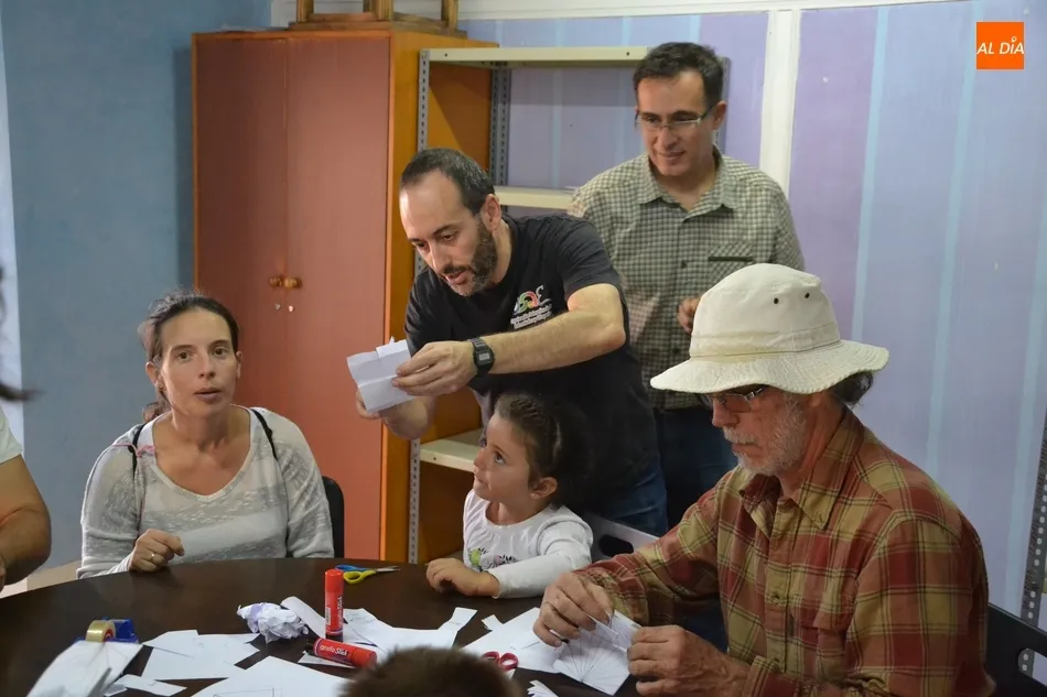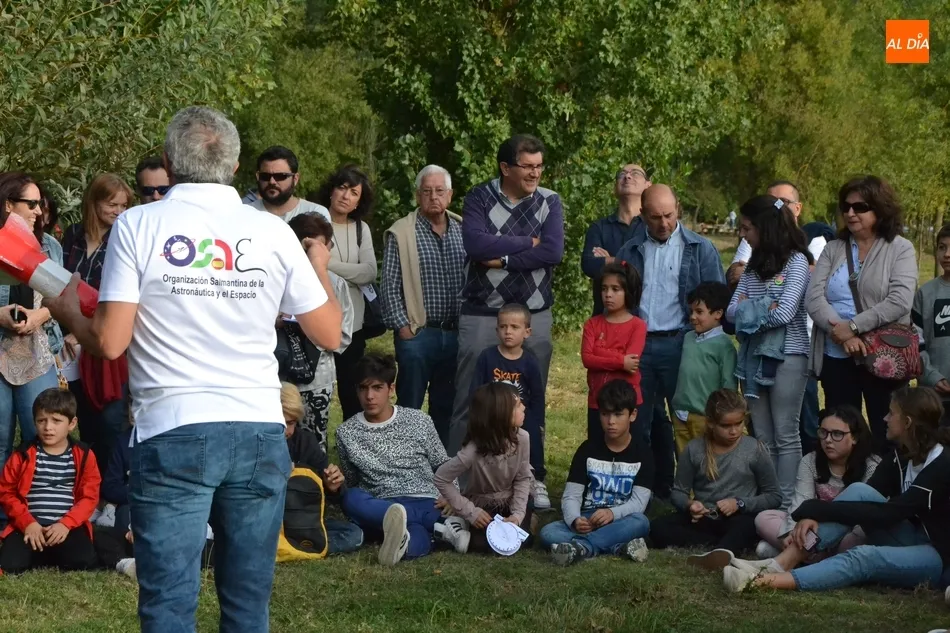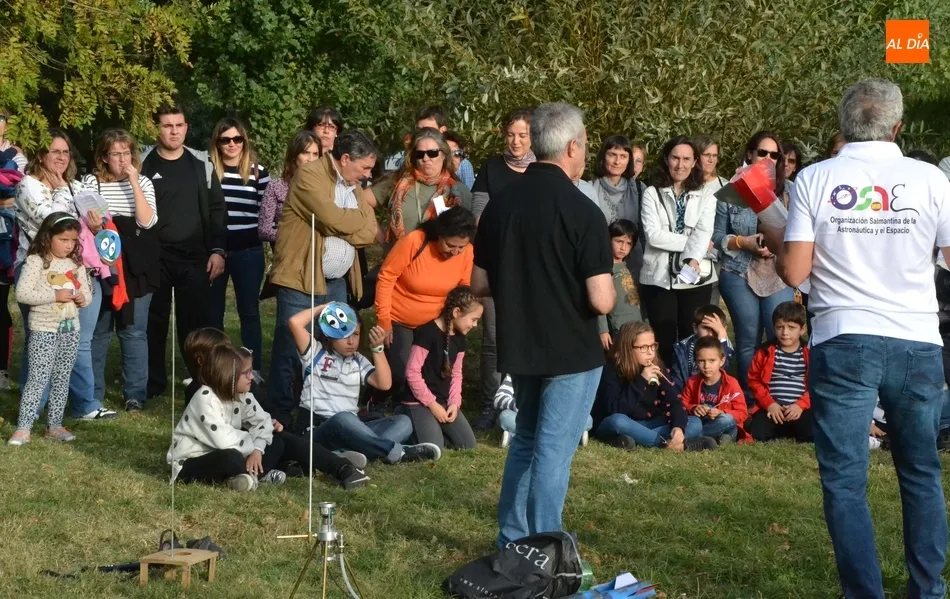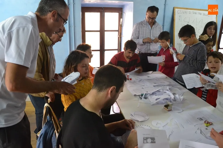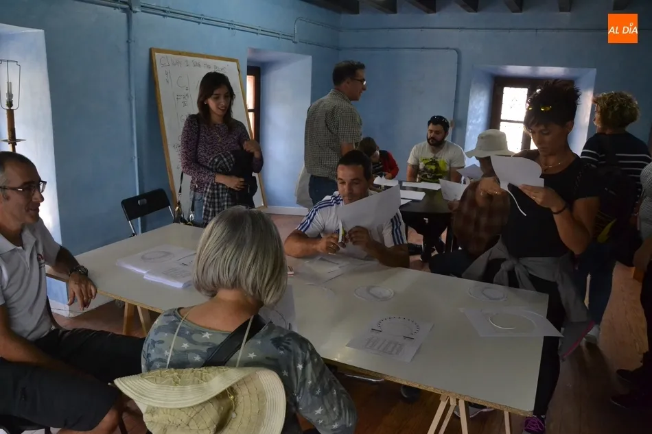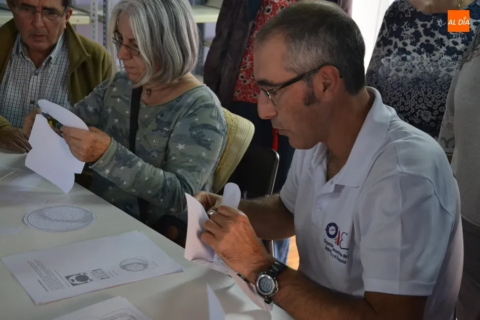 Concluida la ronda de lanzamientos, los que quisieron pudieron volver a entrar a La Fábrica a rematar los talleres, todos ellos dirigidos por integrantes de la Organización Salmantina de la Astronáutica y del Espacio, que explicaron cómo hay que usar tanto el reloj solar como el planisferio celeste.