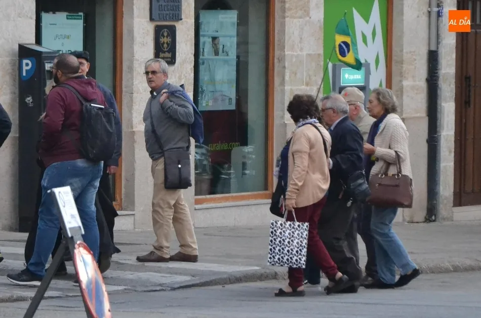 Entre todas esas enseñas españolas que ha habido estos días por la ciudad se pudo ver en la tarde del domingo en plena Plaza Mayor una pequeña bandera de Brasil, portada por un grupo que estaba recorriendo la ciudad, acompañada al menos por dos sacerdotes locales. Hay que apuntar que a media tarde del domingo había aparcados tres autobuses de turistas en la Avenida Sefarad.