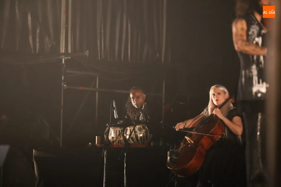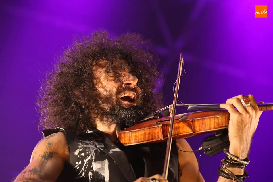 El violinista estuvo acompañado por una imponente banda que compuso un conjunto instrumental de batería, guitarra, viola, violonchelo, contrabajo y percusiones indias.