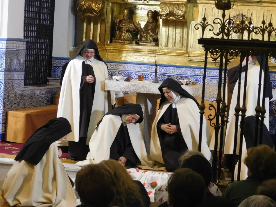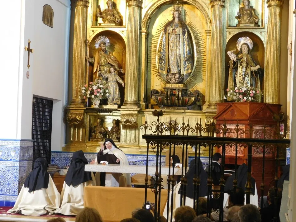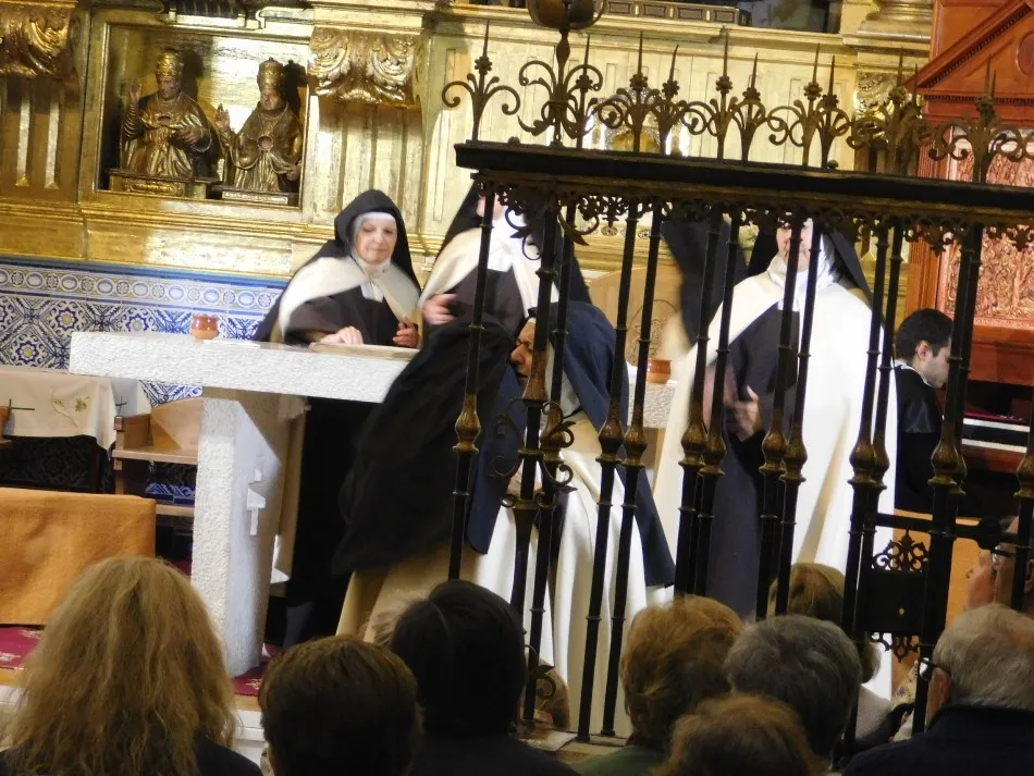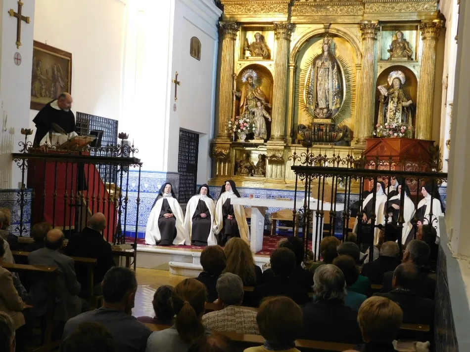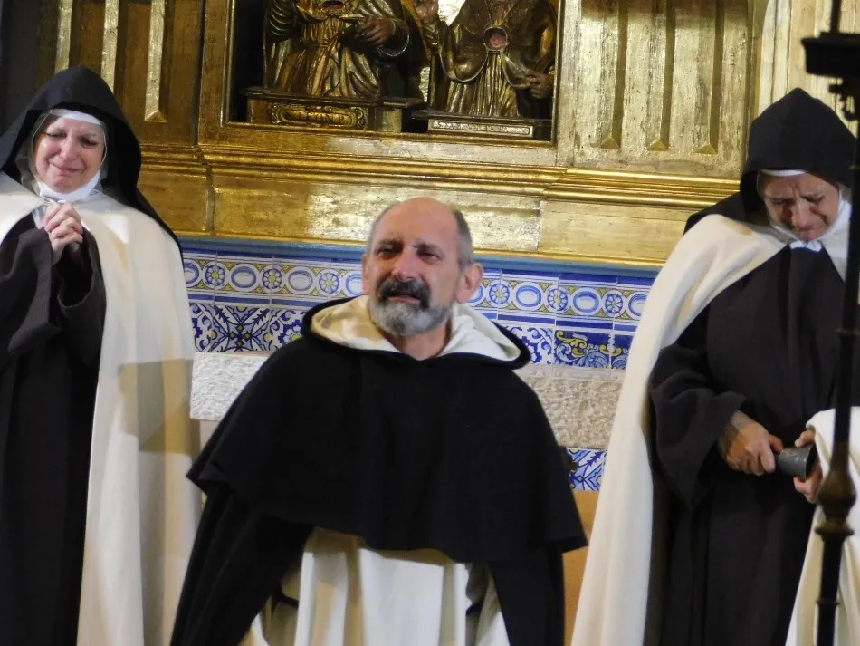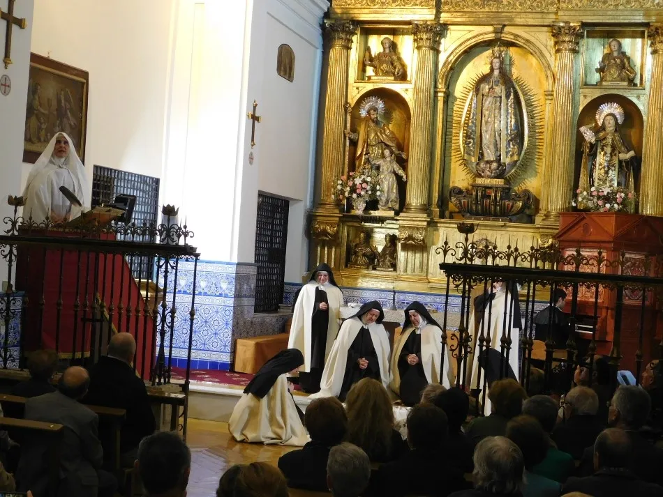 Hábitos de paño de oveja visten a siete monjas que parecen recién salidas del XVI y recién llegadas a un convento, que se transforma mágicamente en el de Alba de Tormes, para enfrentarse en el altar a un hombre, padre dominico, enviado de la Inquisición que simboliza todo aquello a lo que se tuvo que enfrentar su madre a lo largo de duros años de transformación y predicación de una religiosidad tan desvirtuada en su tiempo. La música que envuelve el momento parece salida verdaderamente de los magistrales dedos de un Salinas, que a las teclas de su renacentista órgano, ayuda a evocar con absoluto realismo la situación vivida por todos los presentes, en especial por las anfitrionas del convento.