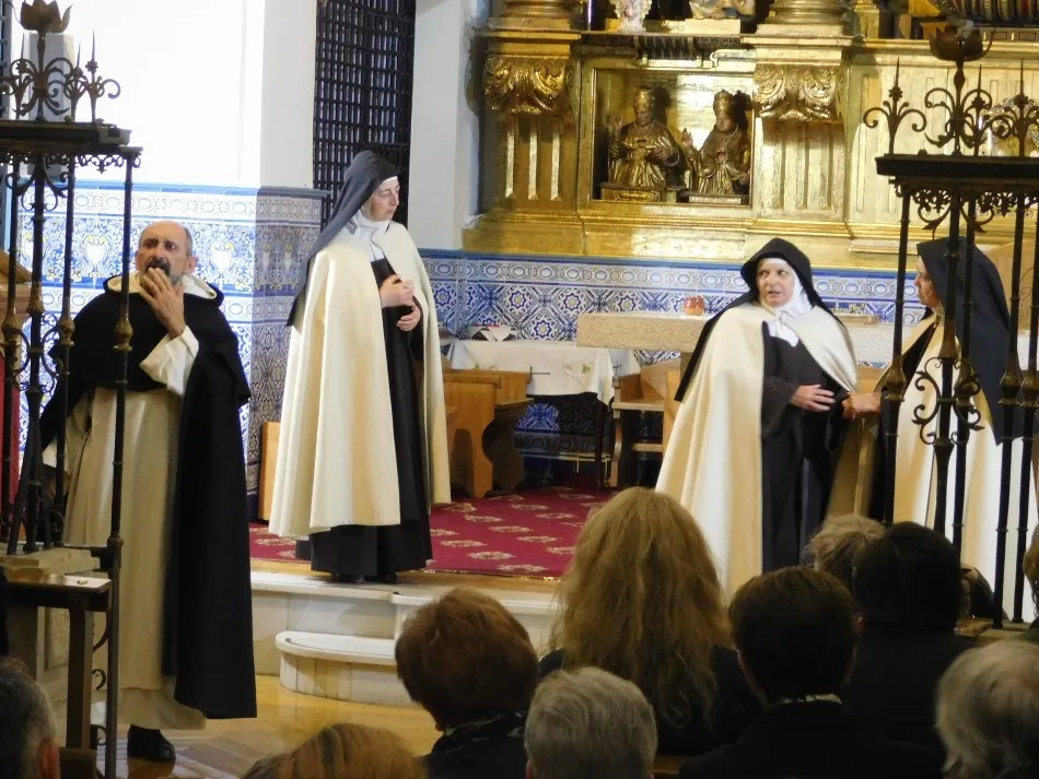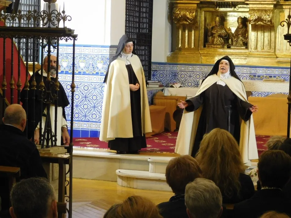 Para celebrar tal acontecimiento y en unas fechas tan próximas al día de Teresa, 15 de octubre, en las que se cierra también el Año Jubilar que para ella ha decretado el Papa Francisco, estas carmelitas vallisoletanas han prestado una vez más la iglesia de su convento a la representación de la obra de teatro ?Teresa, la jardinera de la luz?, que tan bien refleja la vida y obra de esta mujer adelantada a su tiempo y universal en todo y para todos. El grupo de teatro ?Lazarillo de Tormes? ha conseguido con su puesta en escena acercarnos a una santa que por ser tan gran mujer, no dejó indiferentes ni a sus contemporáneos ni a todos aquellos que se han acercado a su figura a lo largo de todos estos siglos. Los vallisoletanos vuelven a hacerlo por tercera vez en esta tarde de sábado en un escenario que ya ha sido pisado por estos actores hace ya medio año, para dar vida de nuevo a sus personajes que dan a conocer de forma tan precisa y espontánea a una Teresa, cuya primitiva celda guardan sus actuales hermanas con el mimo y emoción con la que se acercaron a ella a través de un trabajo que lo consigue plenamente.