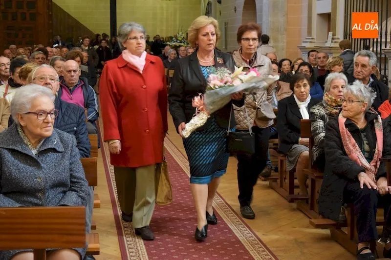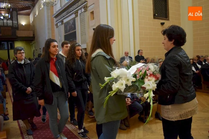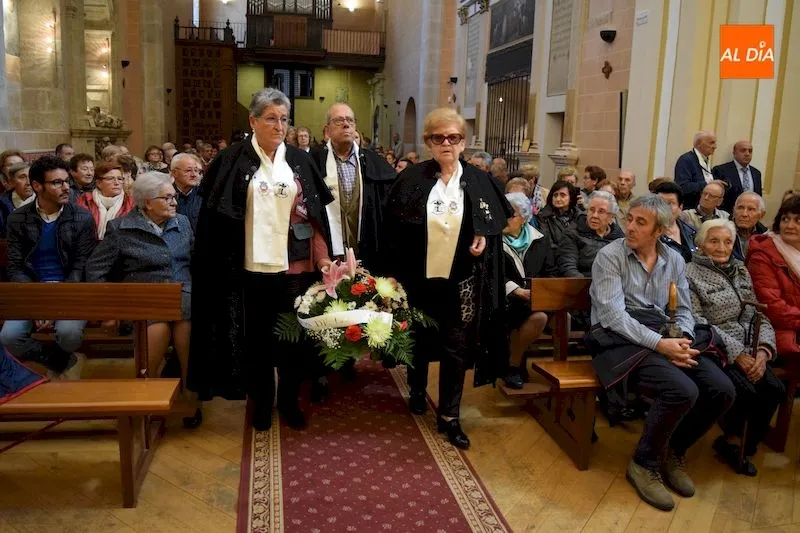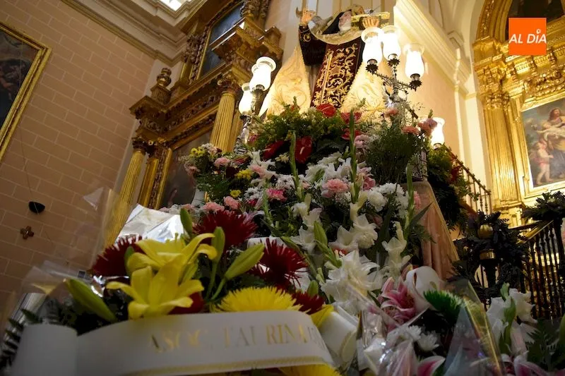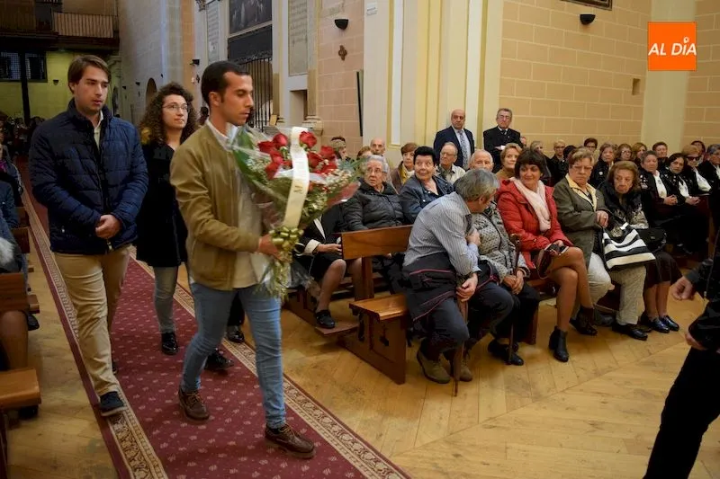 Concurrida y multitudinaria ofrenda floral a la imagen de Santa Teresa de Jesús antes de su salida en procesión por Alba de Tormes