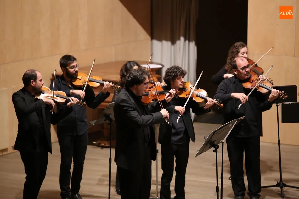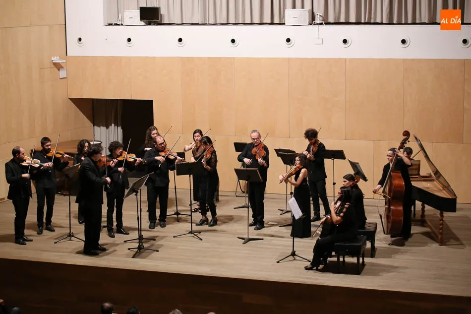 La Orquesta Barroca Academia de Música Antigua de la USAL ofreció este lunes el concierto ?Poéticas de la familiaridad? en el auditorio de la Hospedería Fonseca. Una jornada musical que ha contado con la participación de Alfonso Sebastián (órgano) y Pedro Gandía (concertino-director).
