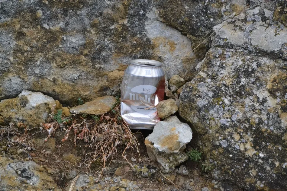 En la mañana del martes, se podían contabilizar en esa calzada hasta una quincena de restos de basura de este tipo, especialmente una colección de latas de cervezas (incluida una ?encajada? entre la peña), varios refrescos, y alguna bebida energética, con distintos grados de oxidación. Asimismo, se pueden encontrar un botellín y una litrona ?bolsa incluida-. De igual modo, hay esparcidos restos de vasos de cristal.