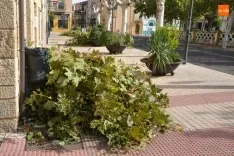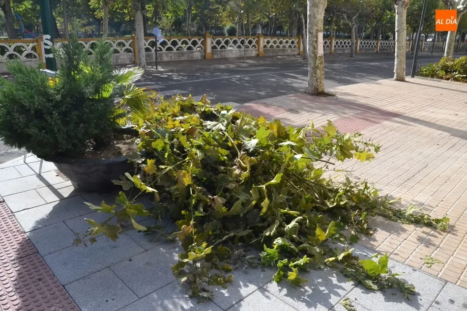 En la mañana del miércoles, fue turno para actuar en varios de los árboles de la calle Santa Clara (en las inmediaciones de la Glorieta del Árbol Gordo). En las imágenes, aparecen los árboles más cercanos a la calle San Fernando, que ya habían sido despojados de sus hojas, que estaban en el suelo ?a la espera? de ser recogidas.