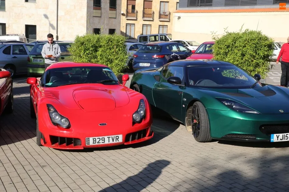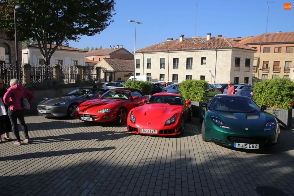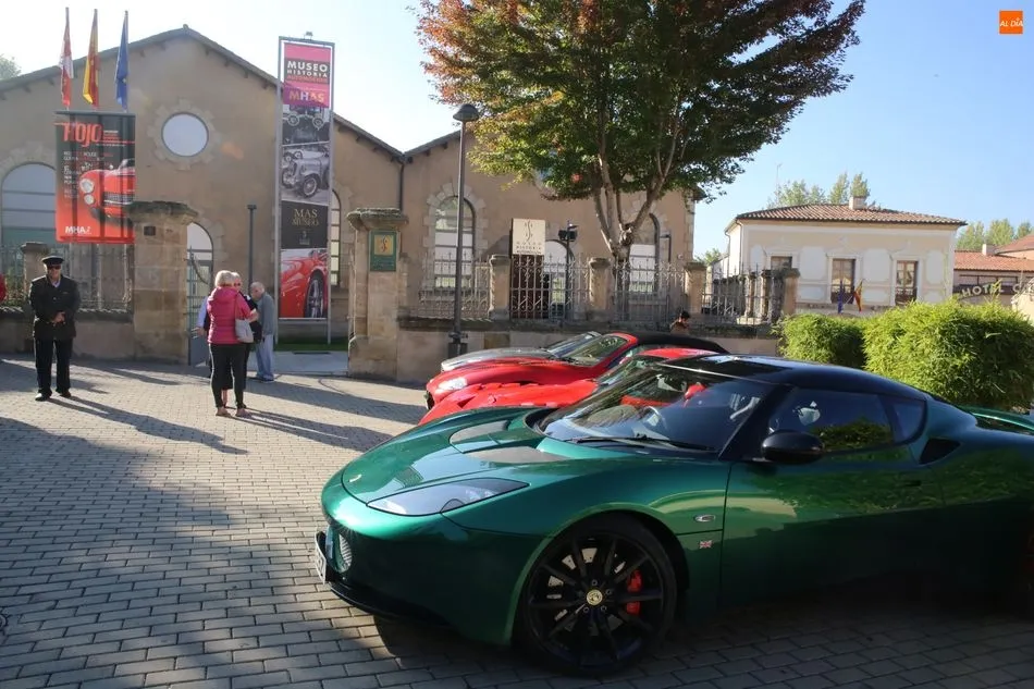 El Museo de Historia de la Automoción de Salamanca ha sido este miércoles escenario de la llegada del Tour Drive España, 13 vehículos de gran calidad procedentes del Reino Unido, y de marcas prestigiosas como Lotus, Ferrari, Aston Martin o Jaguar, entre otros, y que han despertado la curiosidad de los que se han acercado esta jornada hasta el centro expositivo.