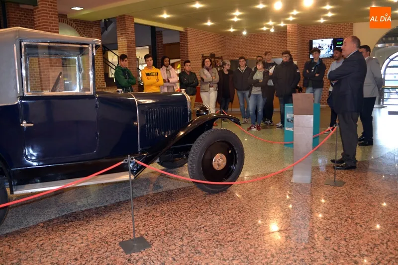 La muestra contaba en su puesta de largo con un grupo de alumnos del IES Peñaranda, quienes presenciaron los primeros pasos del recorrido por la evolución en el mundo del motor, que ha contado con la presencia del Primer Teniente de Alcalde y Concejal de Juventud, Francisco Díaz, el director de Mares Virtuales, Joaquín Pinto y Luis Miguel Mata, máximo responsable del Museo de Historia de la Automoción, quien ofrecía a los jóvenes la posibilidad de realizar una visita especial guiada por el museo salmantino.