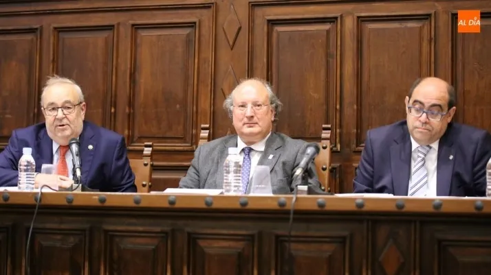 El vicerrector de Política Académica y Participación Social, Enrique Cabero, y el teniente alcalde de Salamanca, Fernando Rodríguez, inauguraban esta tarde la jornada titulada Importancia de la Escuela de Salamanca en el Medievo y en la Era Contemporánea. La actividad está organizada por la Asociación Grupo de Opinión Salvador de Madariaga (GOSM) y la Oficina del VIII Centenario Salamanca 2018 con motivo de la conmemoración de los ocho siglos del Estudio salmantino y el 25 aniversario del grupo GOSM. Los actos se extienden hasta mañana y se trata de profundizar en distintos aspectos relacionados con la propia Escuela de Salamanca y con su relación con América Latina.