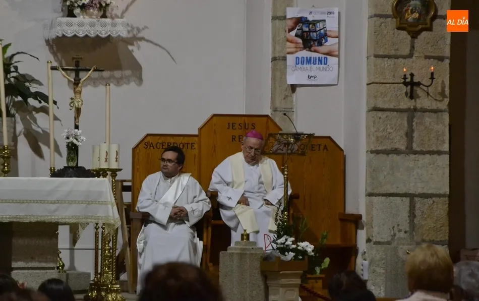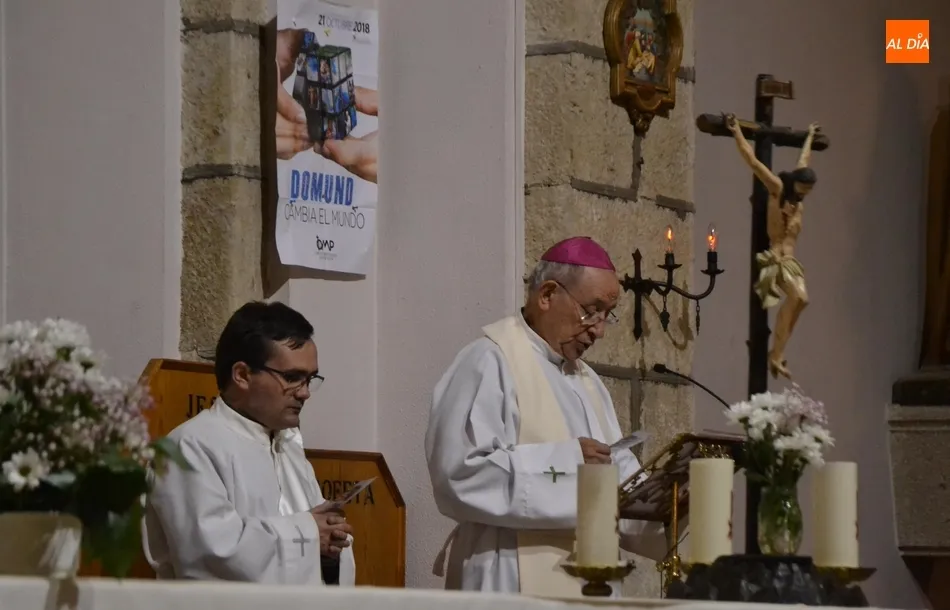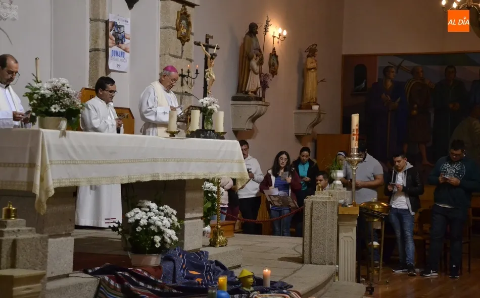 Allí se dieron cita un grupo de fieles mirobrigenses, entre ellos varios niños, que asistieron a una celebración que fue presidida por el Administrador Apostólico de la Diócesis, Francisco Gil Hellín, quién estuvo acompañado por el párroco de San Cristóbal, Rafael Caño, el diácono Efraín Peinado, así como por el delegado de Misiones, José María Rodríguez-Veleiro.