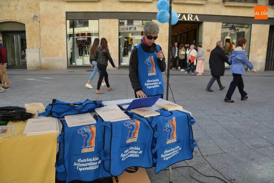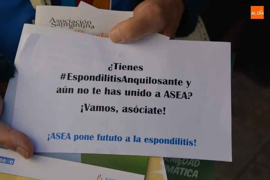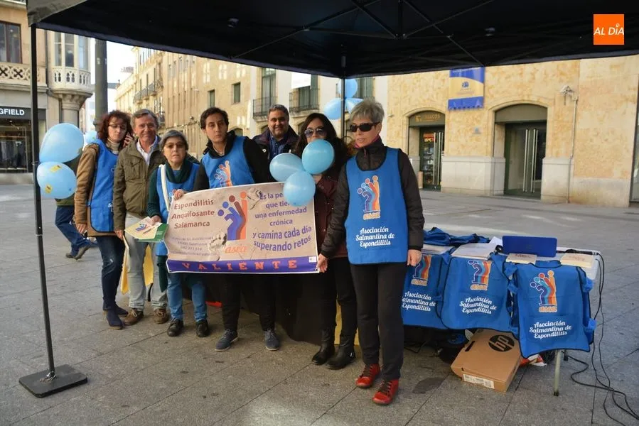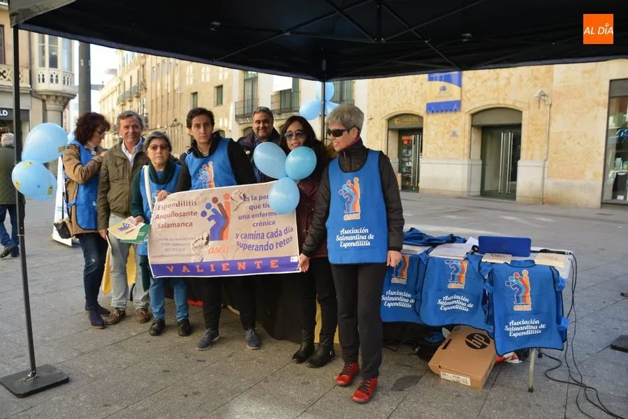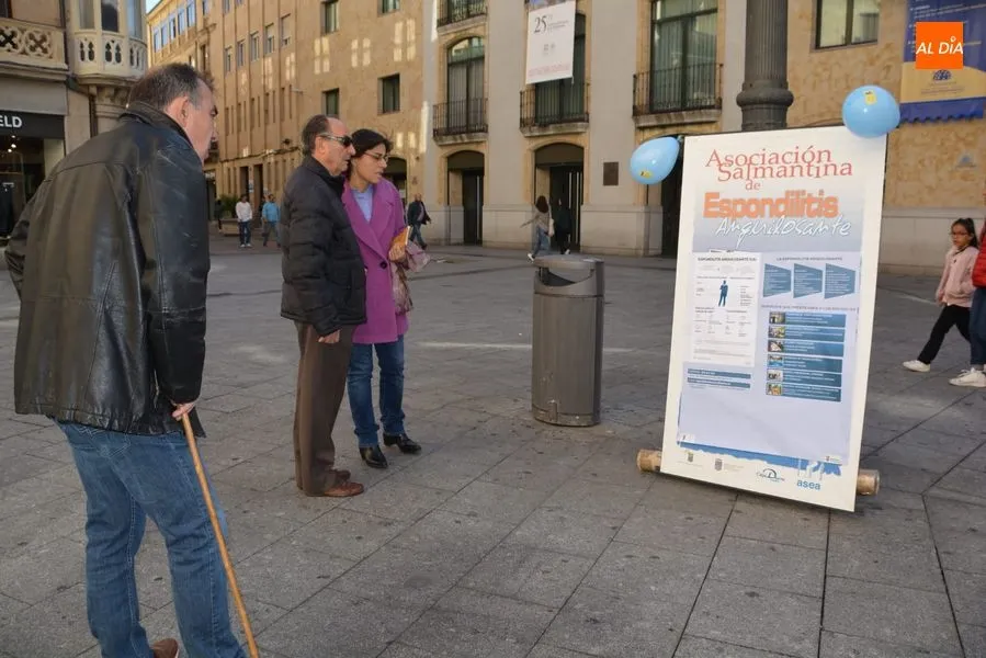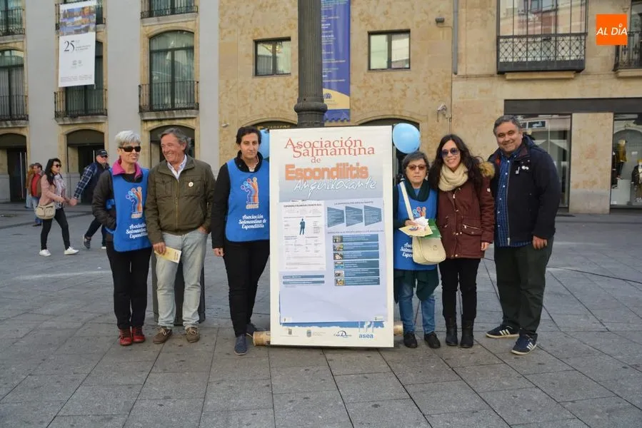 Con motivo del día dedicado a la divulgación de la Espondilitis Anquilosante y otras Espondiloartropatías a nivel nacional, que se celebra este sabado, la Asociación Salmantina de Espondilitis Anquilosante y otras Espondiloartropatías, ASEA, organizó el pasado viernes 19 de octurbe una charla en el Colegio de Médicos el viernes 19 y una Mesa Informativa que se ha celebrado en la mañana del sábado en la plaza del Liceo. Además, durante la noche, la fuente de la Puerta Zamora se teñirá de azul, el color predominante en el logotipo de ASEA.