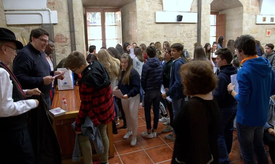 No es habitual ver a jóvenes de bachillerato entusiasmarse con la lectura de poemas. Pero el pasado miércoles 17 se pudo ver a los estudiantes haciendo cola para la firma de los poemas que, en fotocopia, tenían de Nilton Santiago (Perú), Ángela Gentile (Argentina), Antonio Hernández (España), Boris Rozas (Argentina-España), Magdalena Camargo Lemieszek (Panamá), Gahstón Saint-Fleur (Haití) y José Amador Martín (España), todos ellos poetas participantes del XXI Encuentro de Poetas Iberoamericanos que dirige el poeta Alfredo Pérez Alencart, profesor de la Usal y colaborador de SALAMANCA AL DIA.