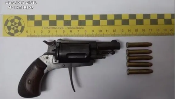 Agentes de la Guardia Civil, que realizaban un control en las cercanías de la frontera de la localidad de Fuentes de Oñoro, detenían este domingo, 21 de octubre, a un varón de 62 años y nacionalidad portuguesa, ya que se pudo descubrir en la puerta del conductor de su coche, un revólver sin marcas ni numeración visible, alojando en el interior del cilindro 5 proyectiles municionados.
