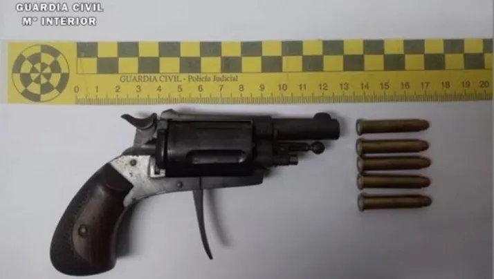 En la puerta del conductor de su coche llevaba el arma sin marcas ni numeración visible, alojando en el interior del cilindro 5 balas