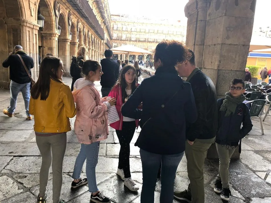 Pero, aún más allá del horario escolar, el domingo 21 de octubre, día específico del Domund, alumnos y profesores del equipo de pastoral (Ángela Francés y José Ignacio Martínez) salieron a la calle para continuar sensibilizando a los demás sobre la importancia de la ayuda a los misioneros. Un grupo compuesto por cerca de 30 alumnos, desde 5º de educación Primaria hasta 2º de la ESO, repartieron no sólo pegatinas, sino sonrisas y generosidad entre los salmantinos que ese domingo paseaban por las calles más céntricas de la ciudad.