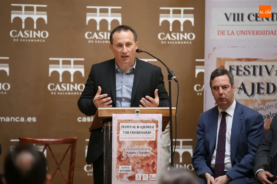 El Festival de Ajedrez VIII Centenario de la Universidad de Salamanca se ha inaugurado este martes, en el Casino, con la recepción del Comité Organizador y Autoridades a los participantes del Festival. Y por la tarde, a las 18.00 horas, se celebrará una partida simultánea del excampeón mundial Anatoli Karpov.