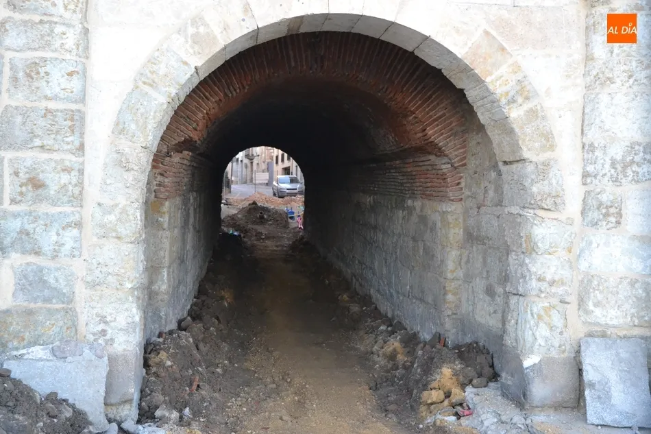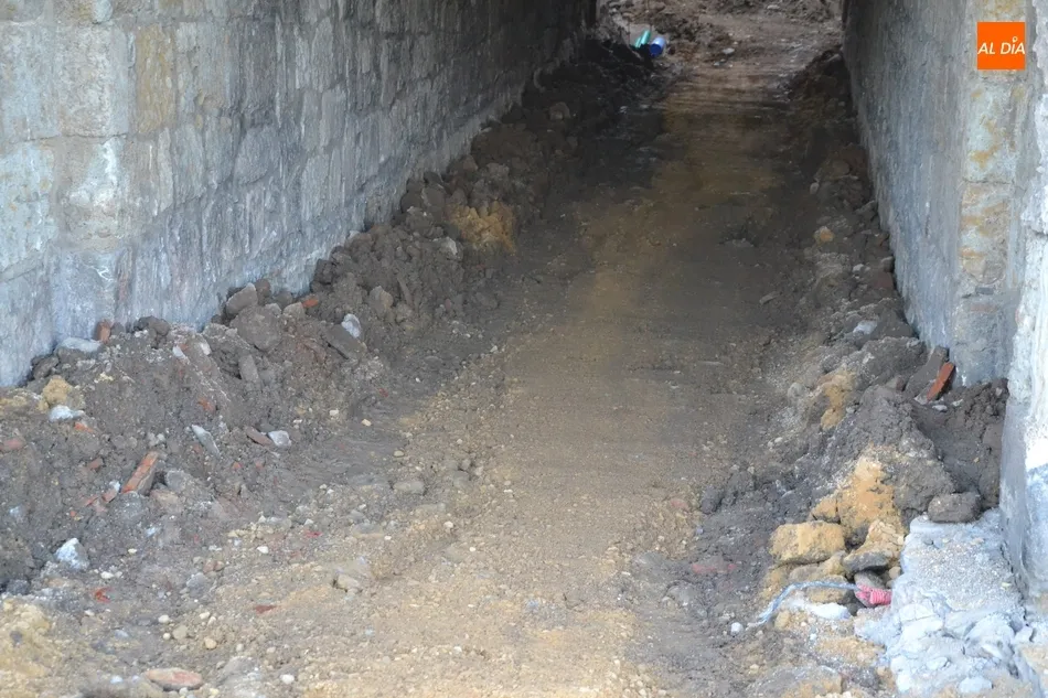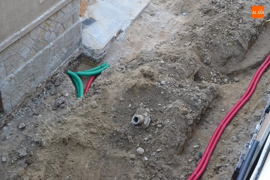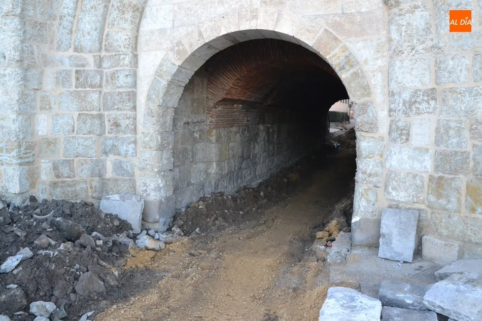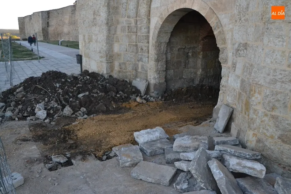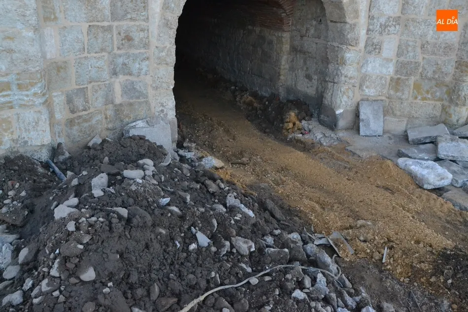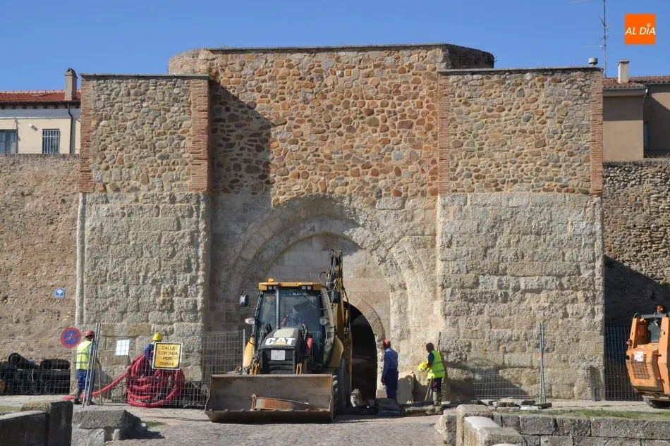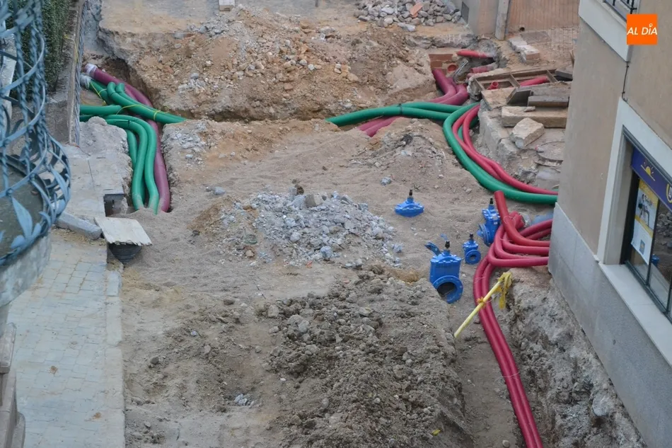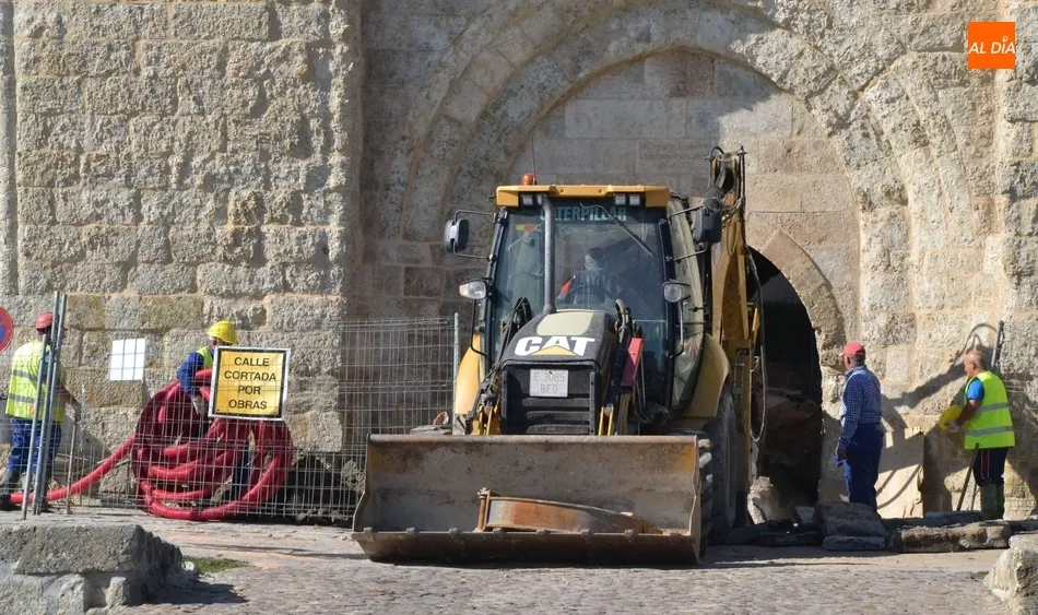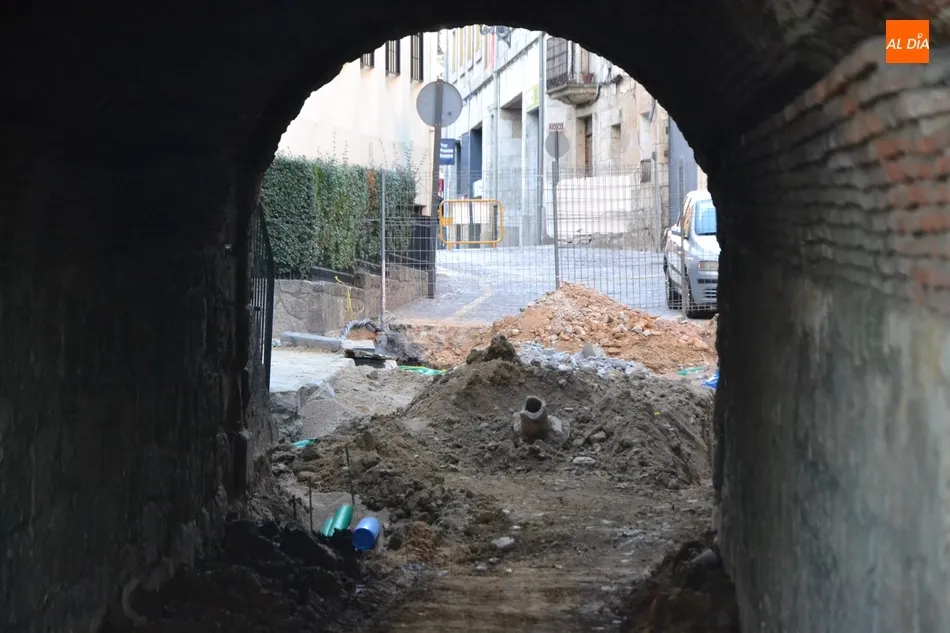 La Rúa del Sol de Ciudad Rodrigo continúa siendo objeto de las obras de sustitución de los colectores de agua potable y de saneamiento en el tramo comprendido entre la confluencia de la Rúa con las calles Muralla y Enrique Zarandieta y el Revellín de San Andrés.